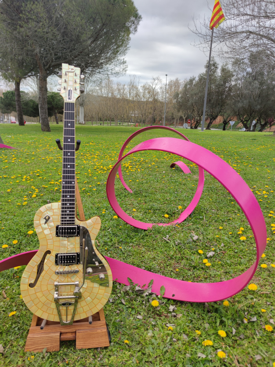 Incrustaciones Dots de Perloid y mosaico Pearl en la tapa y la pala