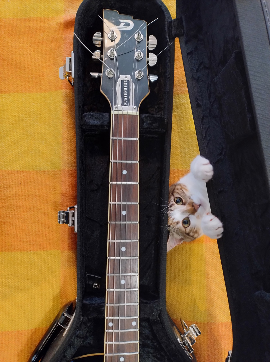 Esta impecable. Con funda, strap locks y documentación de la guitarra. Gato no incluido.