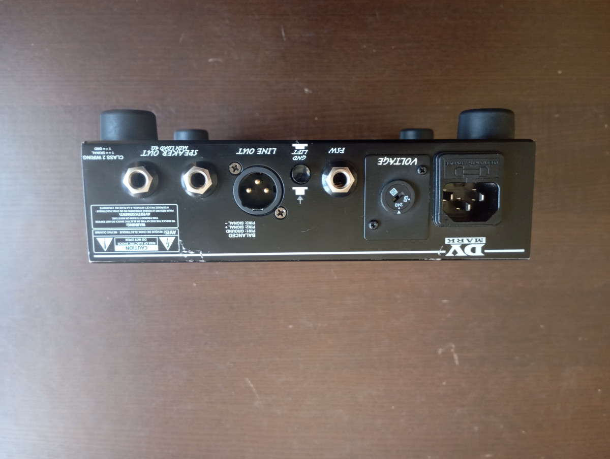 Entrada para footswitch de cambio de canal (no incluido), entrada aux, salida XLR. Voltaje dual 120v/240v