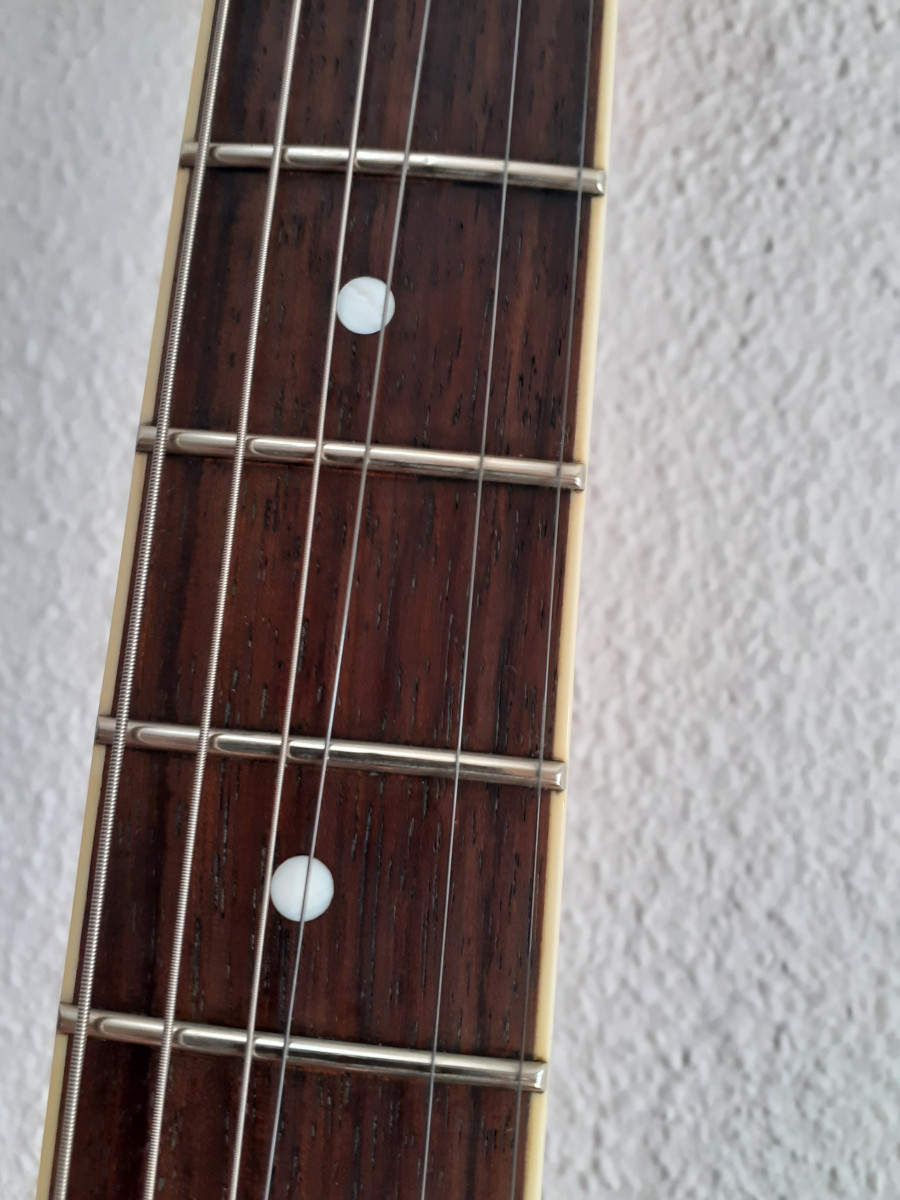 Está puesta a punto hace nada por luthier, tiene su estuche en condiciones más que aceptables y suena brutal con esas pastillas Kent Armstrong.