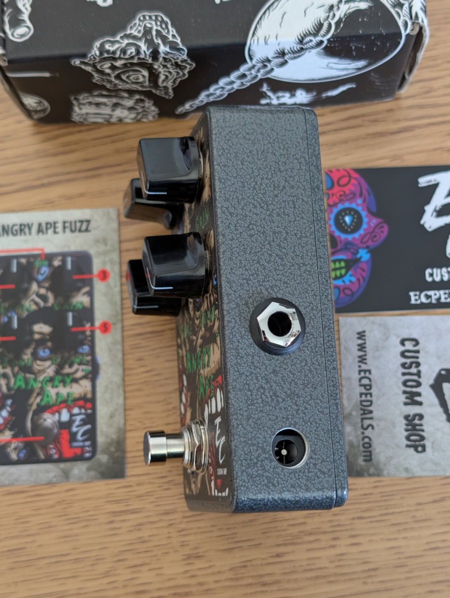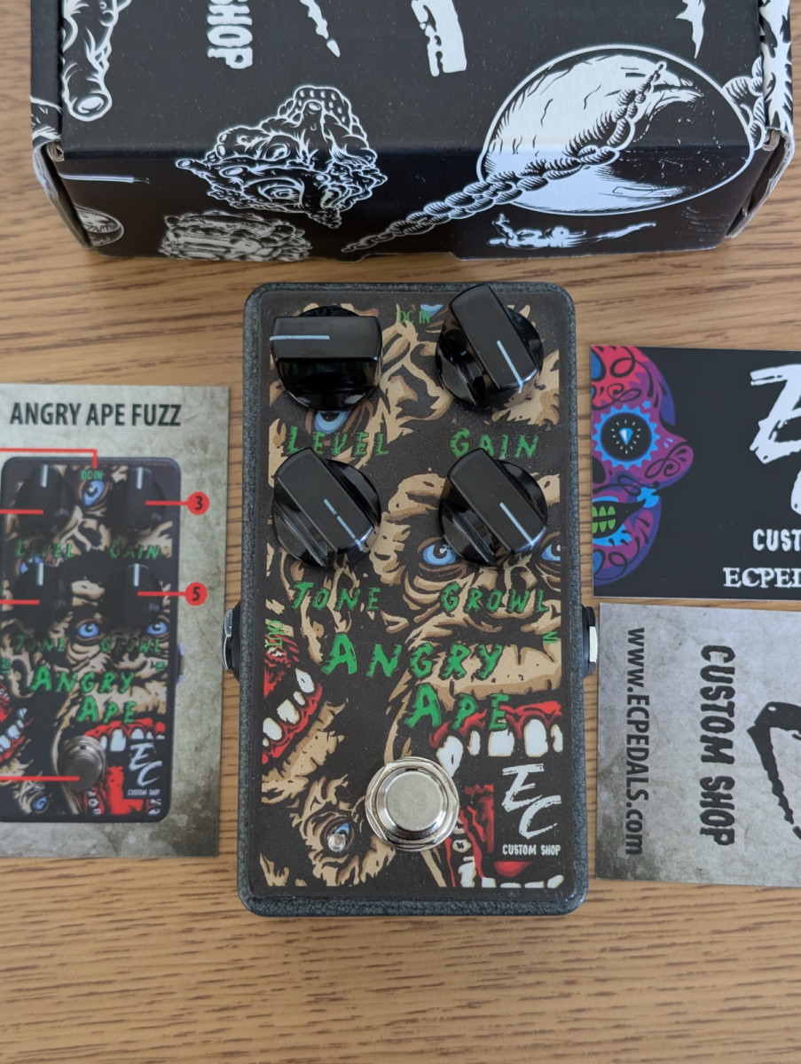 El pedal Angry Ape Fuzz está diseñado para bajo, pero también se puede usar con guitarras eléctricas. Lo mejor del pedal es el control para conseguir sonidos de fuzz gate sesenteros. En el minuto 3:40 se puede oir: