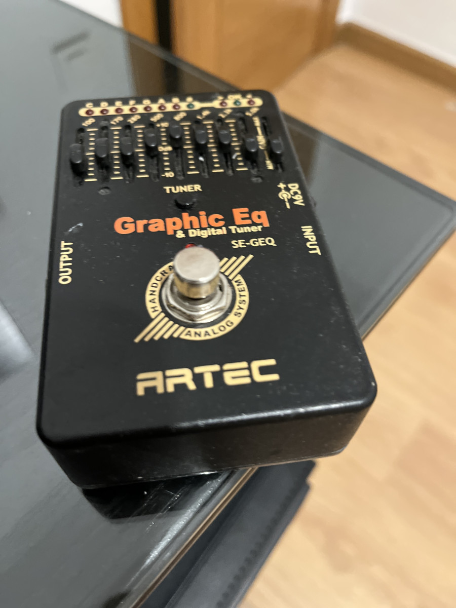 - Equalizador y afinador Artec. 20 euros (Marcas de uso ligeras, puede funcionar a pilas o alimentación a 9v. Tuvo velcro pero ya no. Estado perfectamente funcional y estético 8/10)