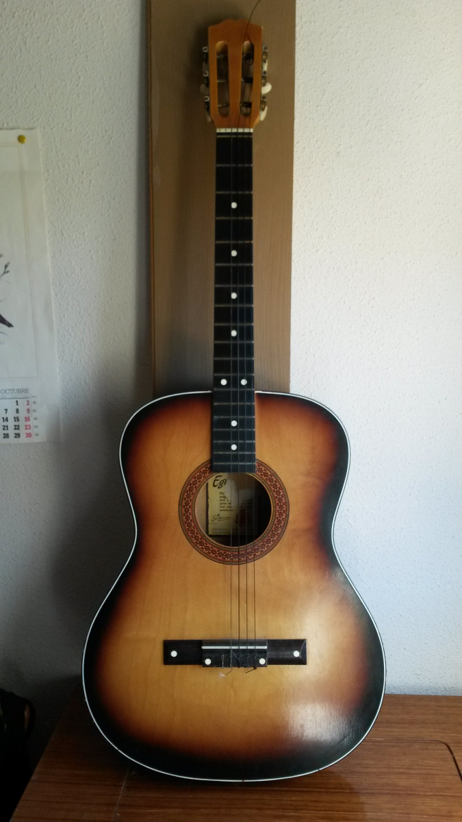 Lleva tiempo guardada y sin uso. No le vendría mal cariño y puesta a punto. Empezando por cuerdas nuevas.