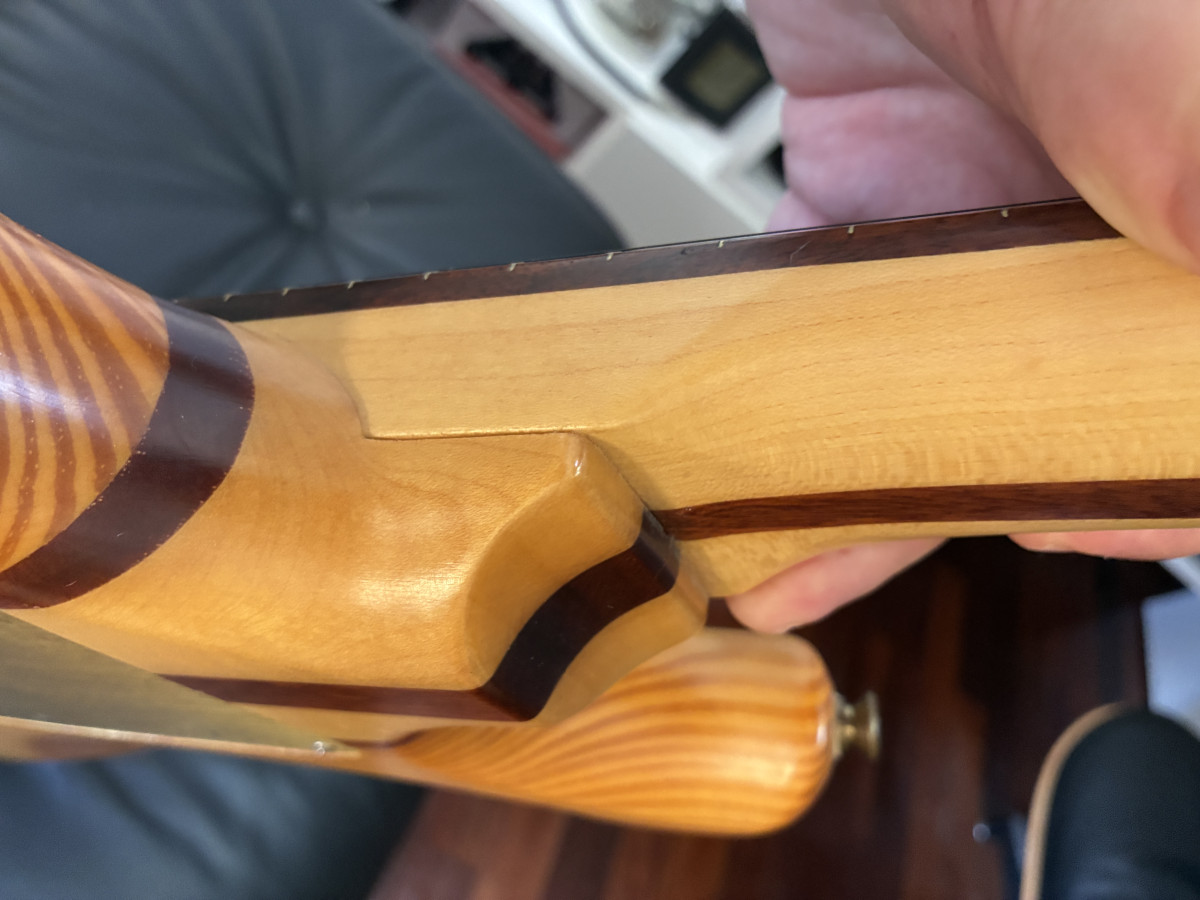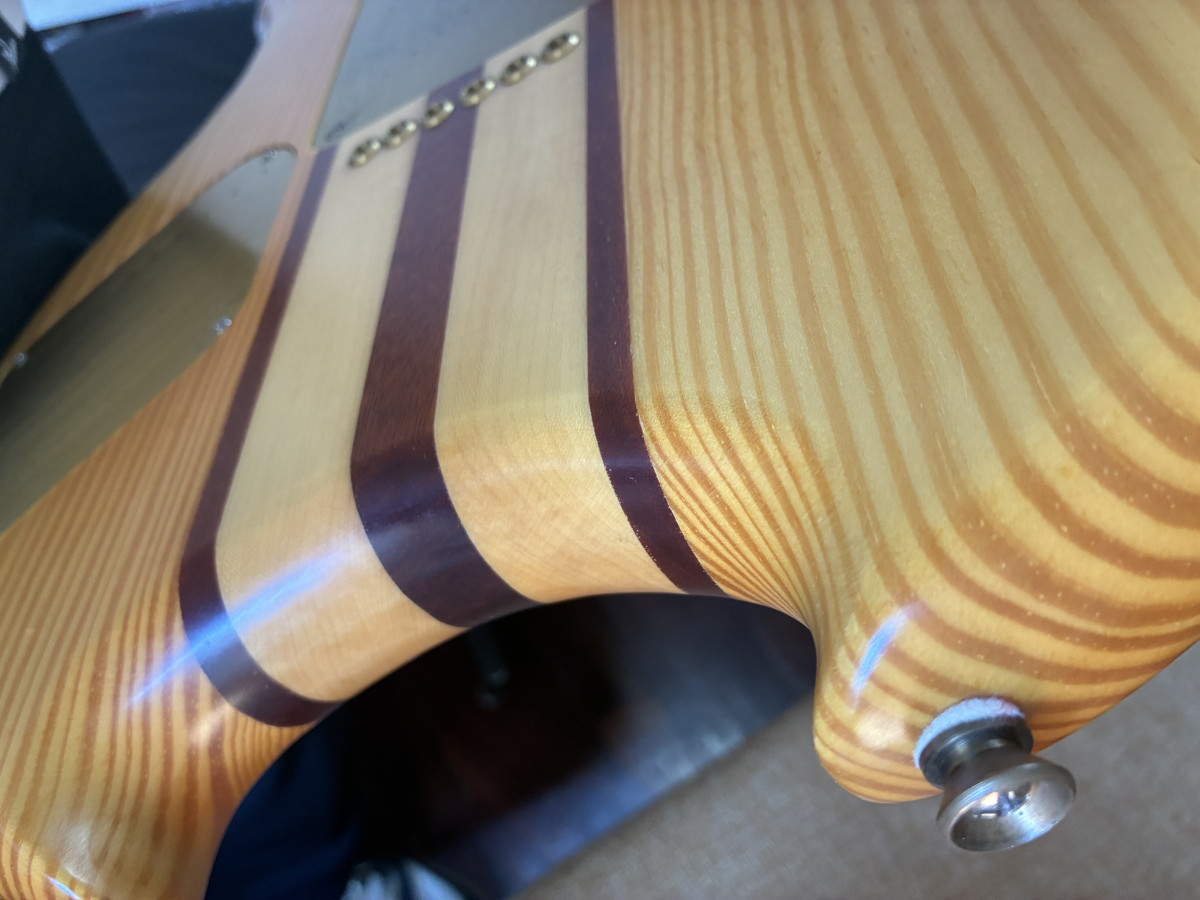 Cuerpo/Mástil: Diseño de mástil a través con madera natural rayada