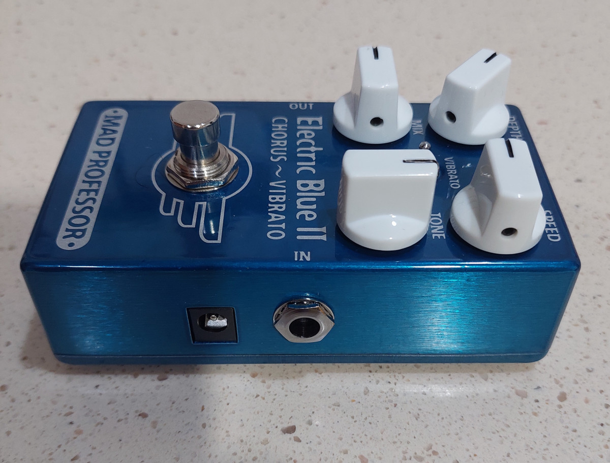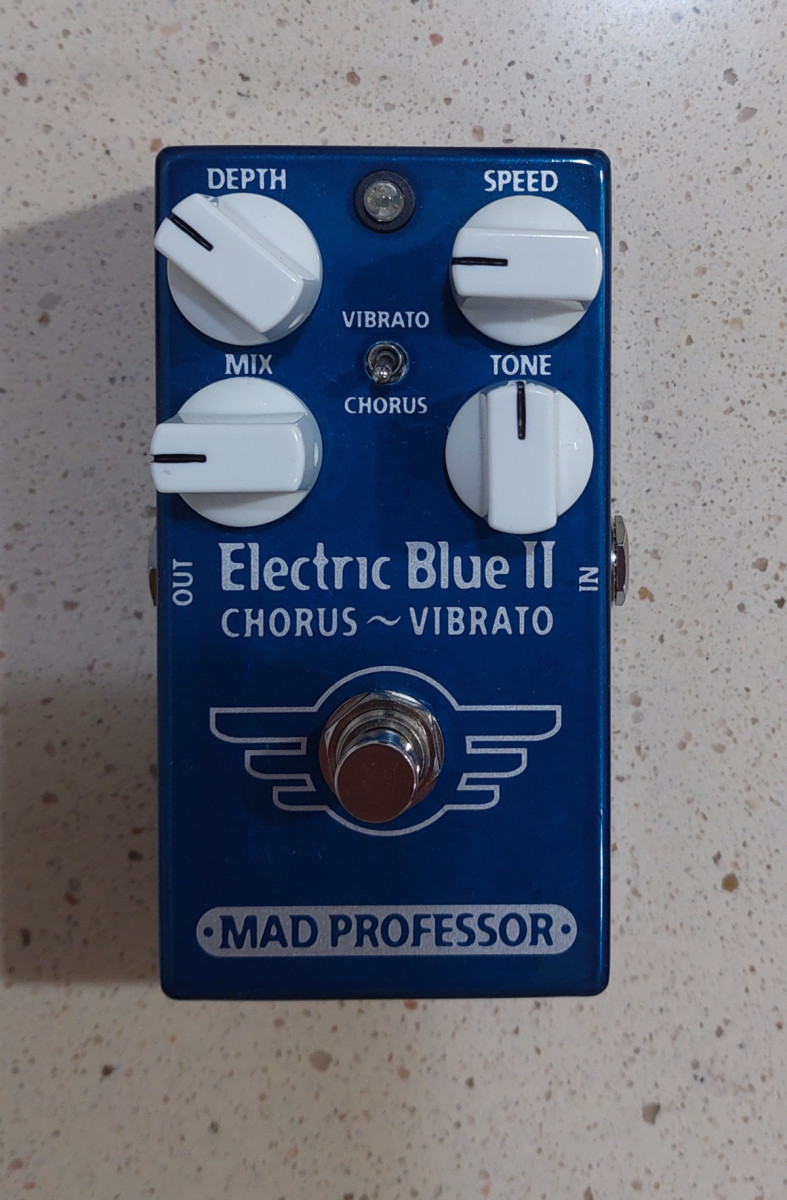 Chorus y vibrato fuera de lo común. Suave o invasivo, versátil, perilla de tono. Admite alimentación standard de 9v o 12v para mayor márgen dinámico. Se observa rayada en la 4ª foto. Por lo demás, en perfecta condición estética y funcional. Pedal mimado, como todos mis pedales y sin salir de casa. En mi opinión, empezaría desde la posición de la primera foto para ir modificando según tu oído y tus gustos.