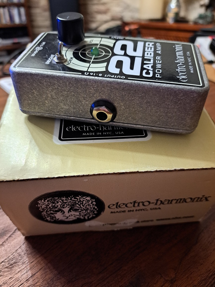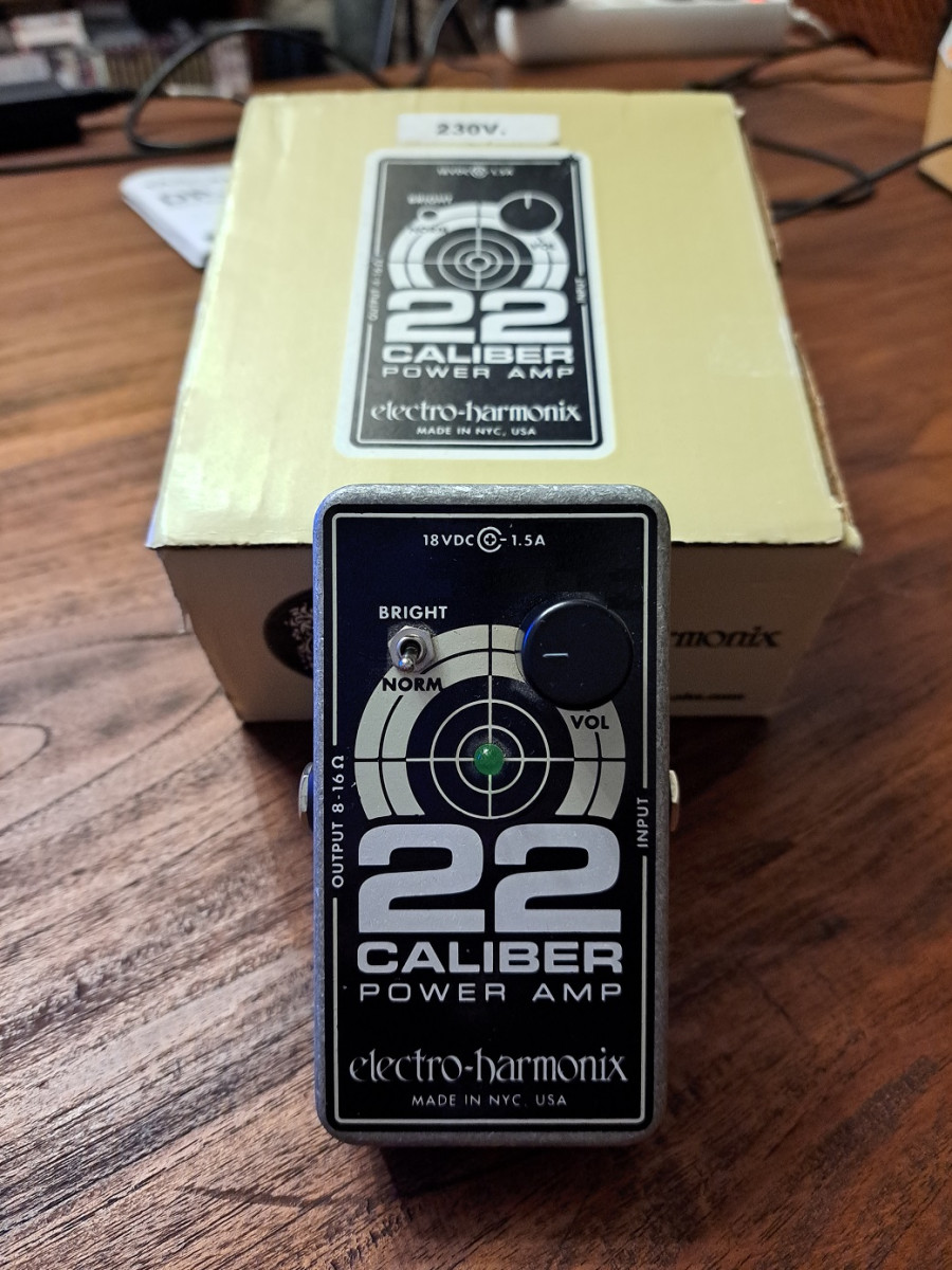 Vendo amplificador de 22 Wats en formato pedal Electro Harmonix Caliber 22, con selector bright / normal , con su fuente de alimentación y su caja originales, en perfecto estado.