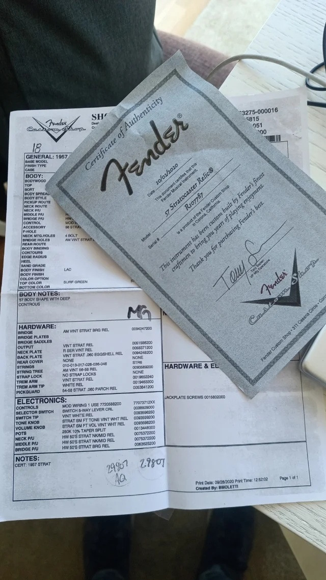 electronica Custom Shop Stratocaster 57 relic Hand Wound