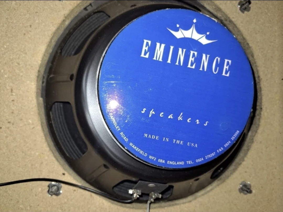 Altavoz Eminence Me12-1008le a 8 Ohm fabricado en los Estados Unidos (USA) 65€, dos altavoces con la pantalla 220€, pantalla vacía 100€, envío 10-20€ según sea altavoz o pantalla completa. Pantalla para amplificador de guitarra con 2 altavoces Eminence Me12-1008le a 8 Ohm fabricados en los Estados Unidos (USA). Están conectados en serie, por lo que las entradas Jack dan 16 Ohmios, aunque se puede modificar fácilmente si prefierss un Jack conectado a cada altavoz que da 8 Ohmios y se podría utilizar con dos amplis o uno con dos salidas a 8 Ohmios