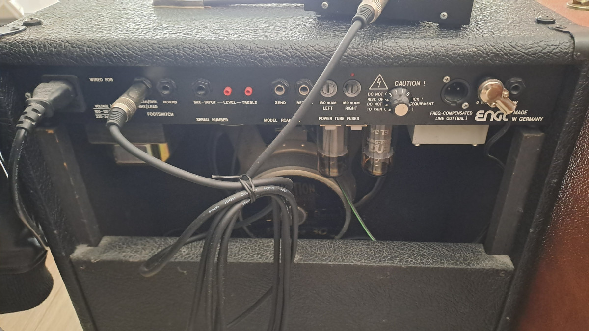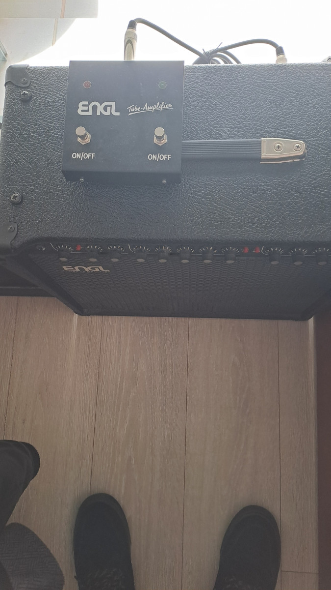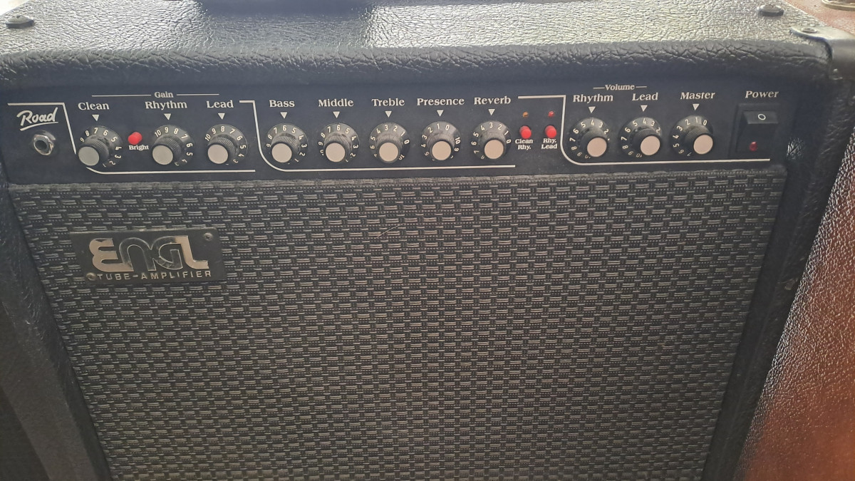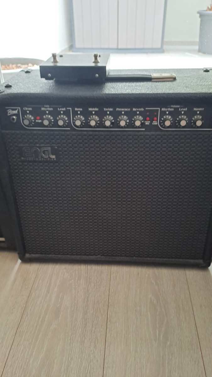Ampli a valvulas Engl Road de 50w y 3 canales y reverb. Ampli raro de ver por lo caro que era en la epoca. Con salida para grabar . Bafle V30 de 12 'britanico de la epoca.