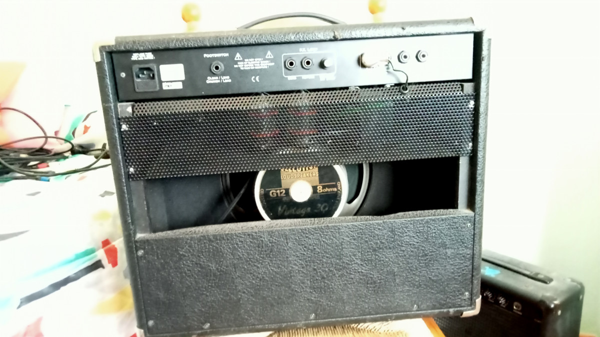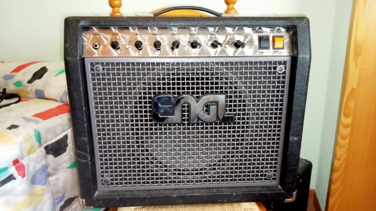 El ampli lo compré de segunda mano allà por el 2016. Se le cambió en 2017 el trafo de salida. El técnico que lo realizó fue Pedro Vecino, que además adaptó el sonido del canal lead para compensarlo un poco a como suena el canal crunch, pero sin perder garra (suena bien, la verdad), además de hacerle una revisión general.