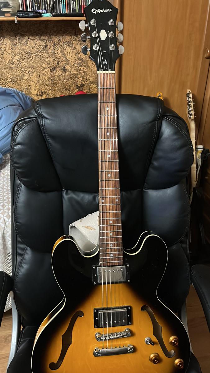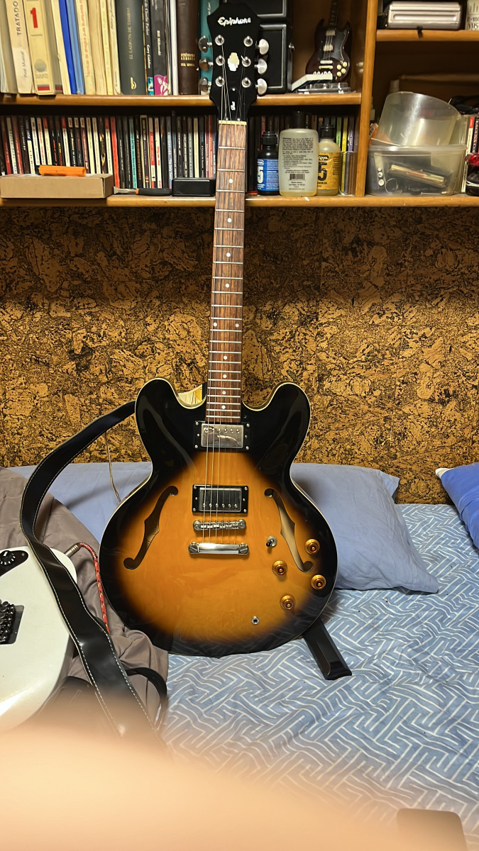 Vendo la epi 335 , en el precio no se incluye el envío que son 14 euros más, el cuerpo y la tapa es laminado de arce y ya si , el mástil es una pieza de caoba y han mejorado bastante desde los 90 , con hardware grover , muy estable y prácticamente nueva , incluyo una funda blanda y si hay que mandar, se embalara debidamente, no cambios ni regatear
