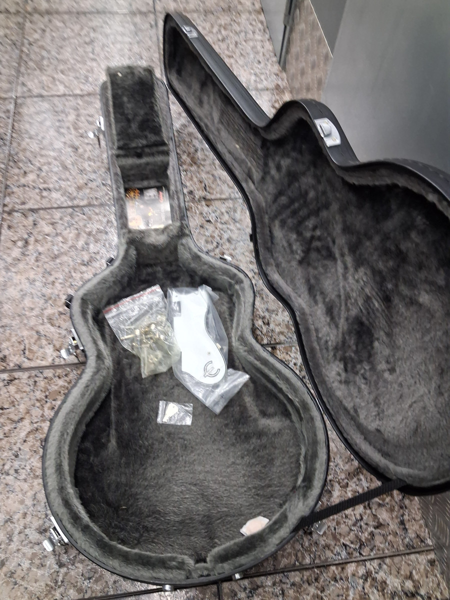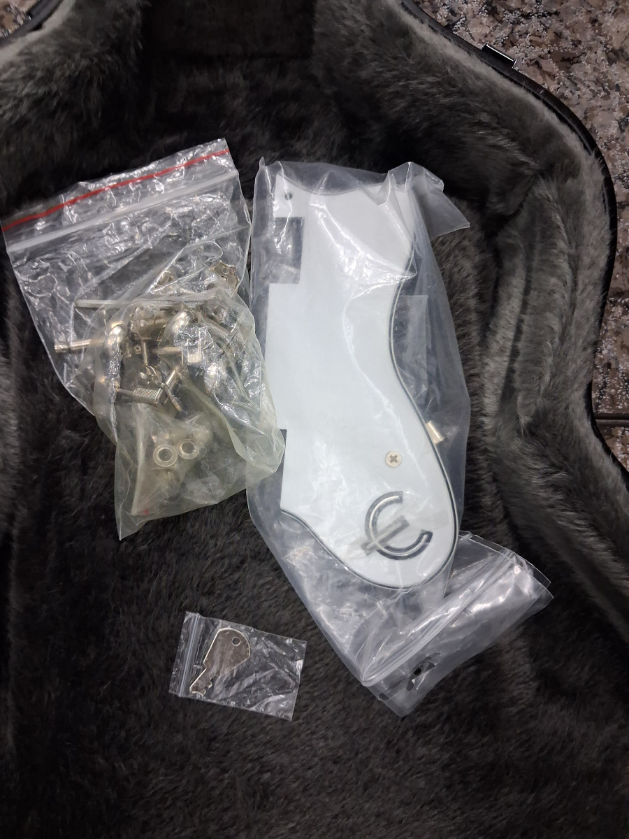 Aunque conservo los originales, se le cambio en su dia el golpeador, los knobs (Gibson) y el clavijero (Kluson Deluxe)