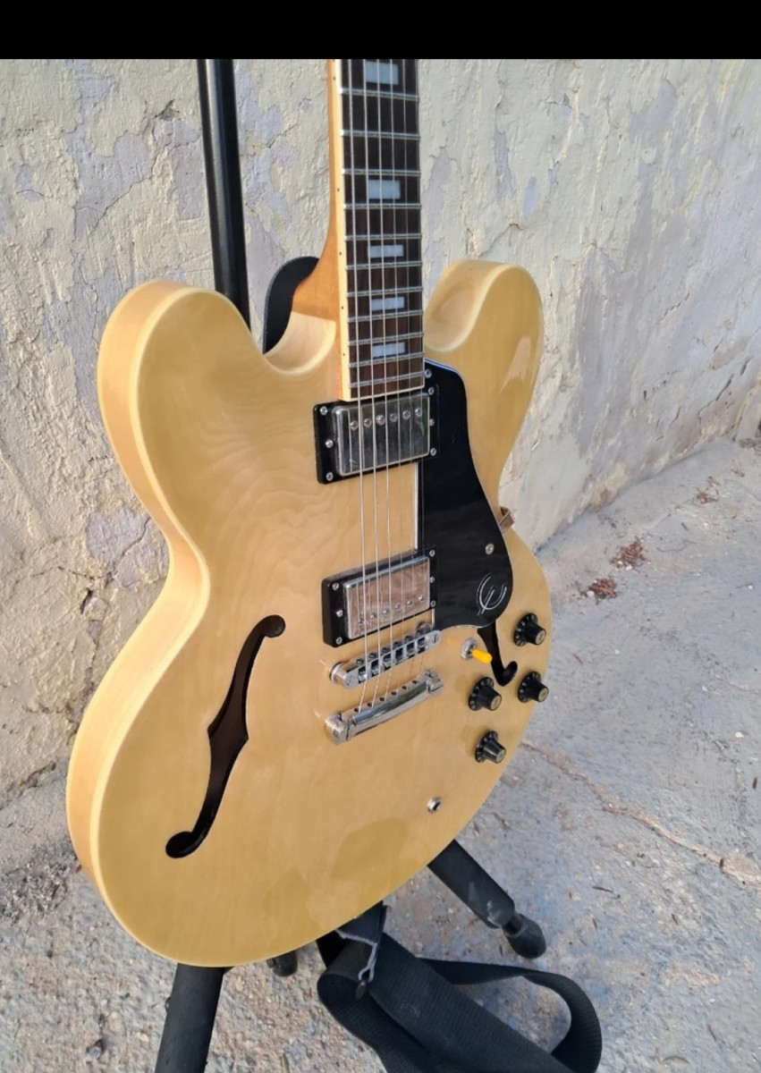 Buenísima versión de la 335 de epiphone, mastil debe ser slim , sonido muy vintage con split coil de fábrica, aunque mucho mejor las humbuckers que tienen su personalidad propia respecto a gibson.