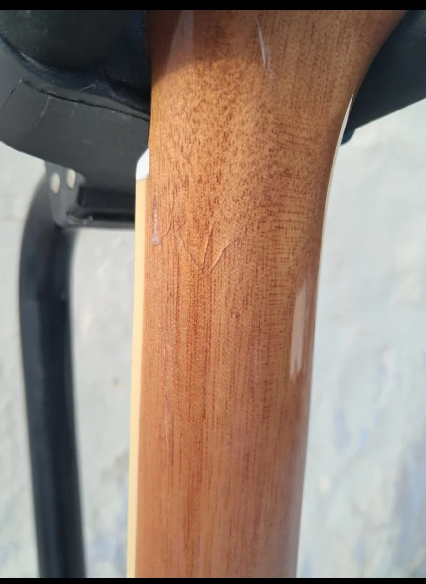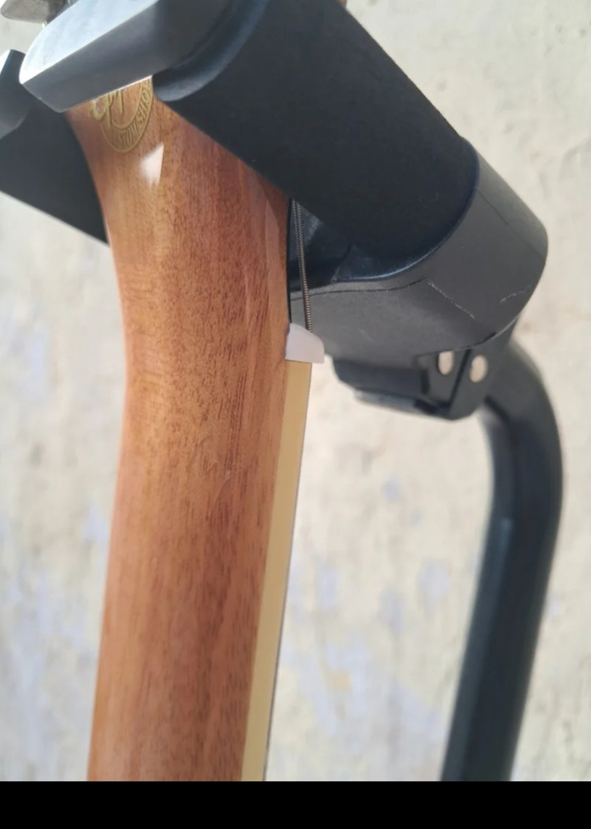 A los lados de la cejuela saltó la laca en un concierto para cambiarme las cuerdas uno que vino a "ayudarme" y no les quitó la tensión, mi luthier rellenó los huecos y aunque se ve craquelado al tacto ni se nota.