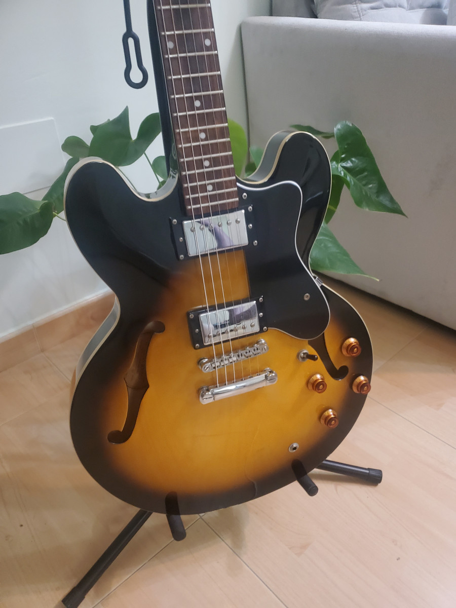 Hola, vendo una Epiphone ES 335 en color sunburt. Es preciosa y suena muy bien para ser una Epiphone. Mando vídeo si es necesario para que la puedas escuchar. Se vende para financiar una Gibson por tanto no se acepta cambio. Viene con maleta dura, aunque en estafo vintage pero muy resistente. Pequeños toques en el binding, obviamente no influye en el sonido. Según me dijo el luthier se puede arreglar por poco dinero. Obviamente, va descontado en el precio. Como repito es sonido es muy bueno y estéticamente es preciosa. Gastos de envío a medias.