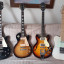 Pues eso, una Epi semicaja de tamaño LP... muy muy buena relacion calidad/precio, en inmejorable estado, salvo un roce en la punta de la pala, con bigsby y string spoiler y con estuche epiphone casi nuevo. es la segunda por la derecha en la foto.