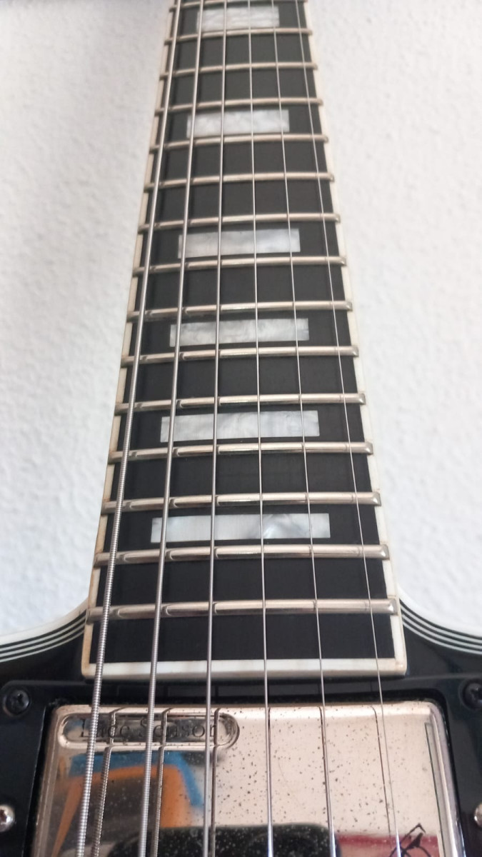 Fabricada en 2016, recien ajustada y revisada. Comprada en este mismo foro en 2018 y mejorada con cejuela de hueso y puente Gotoh. Un par de dings por detrás, ninguno visible con la guitarra puesta. Pastillas originales Lace. Se envía con funda blanda bastante buena.