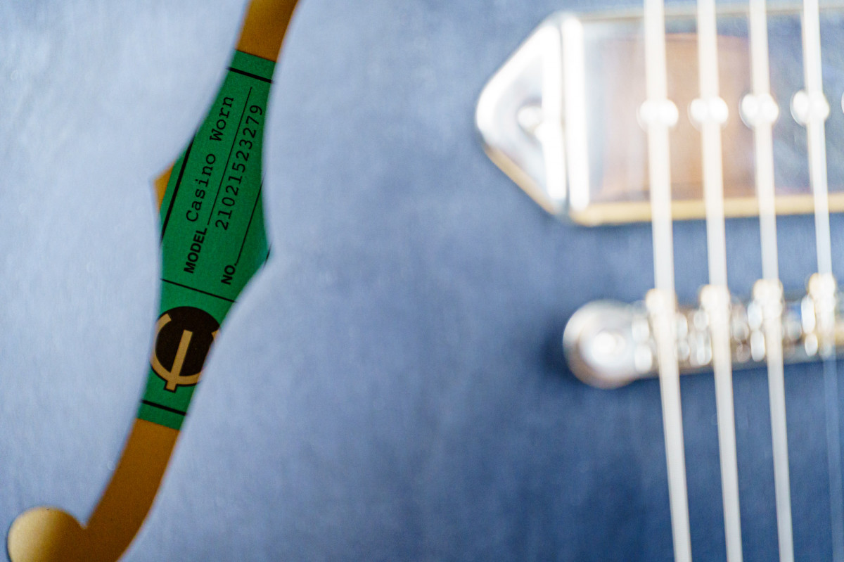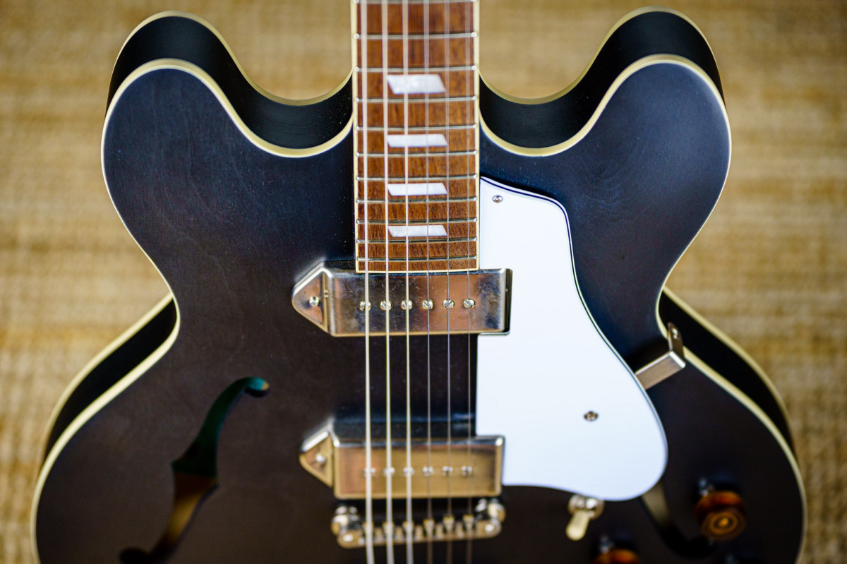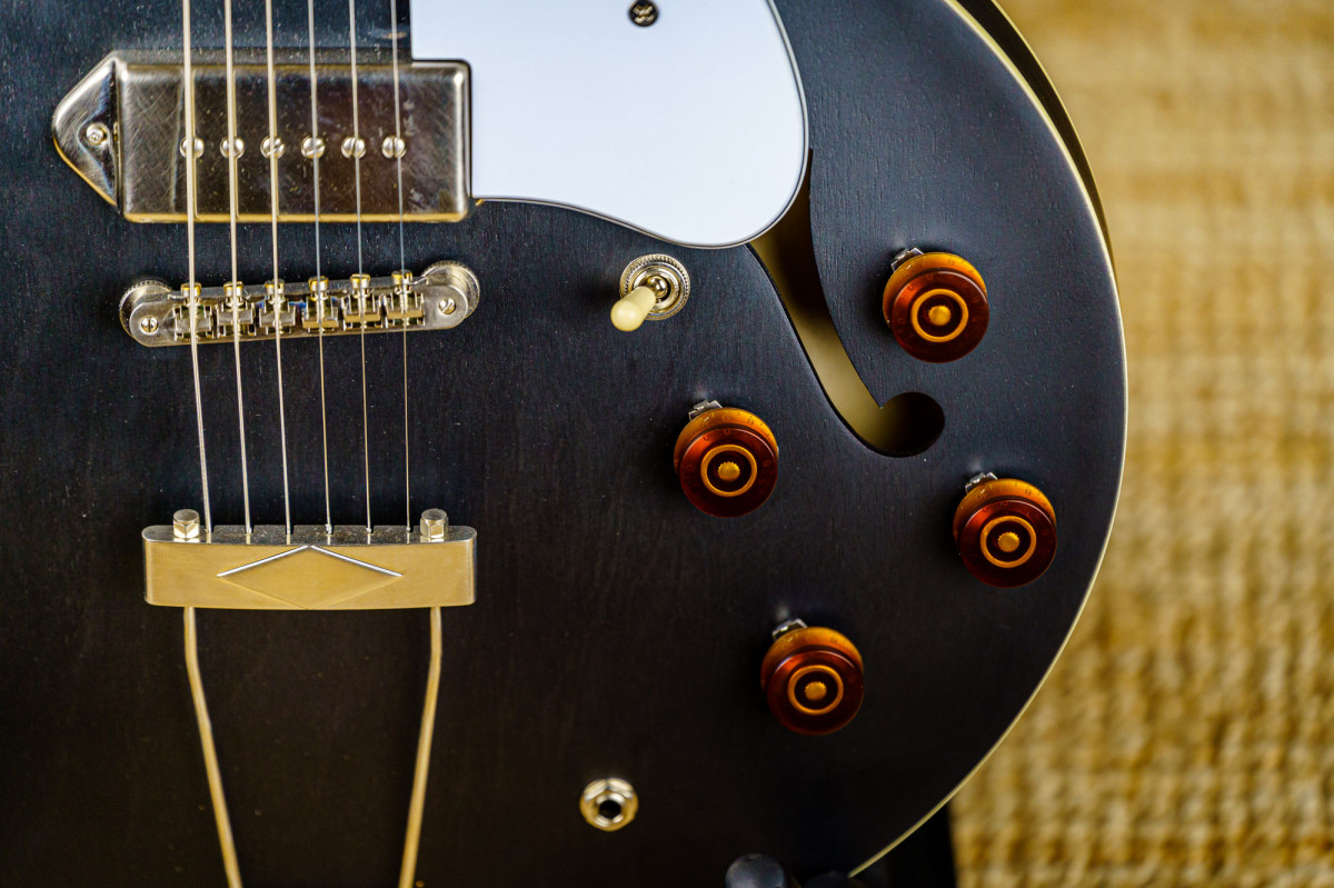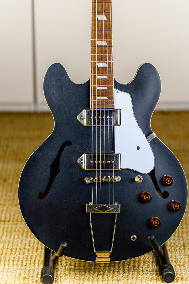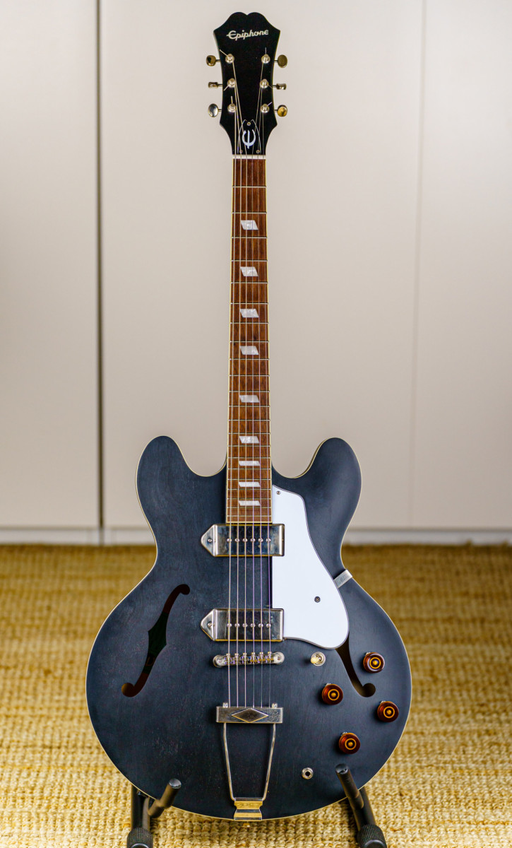 Increible (para el precio) Epiphone Casino en su version "Worn" color negro "Ebony", con acabado satinado, pastillas P90 y cableado de calidad CTS con orange drops (no como la anterior Casino que lleva pots mas malos).