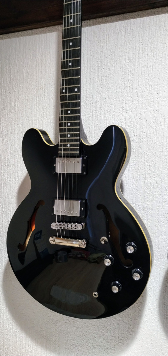 Guitarra eléctrica Epiphone 335 Dot en acabado negro. Estado excelente. Clavijero Grover. Cuedas D'Addario NYXL 9,5-44 recién puestas.