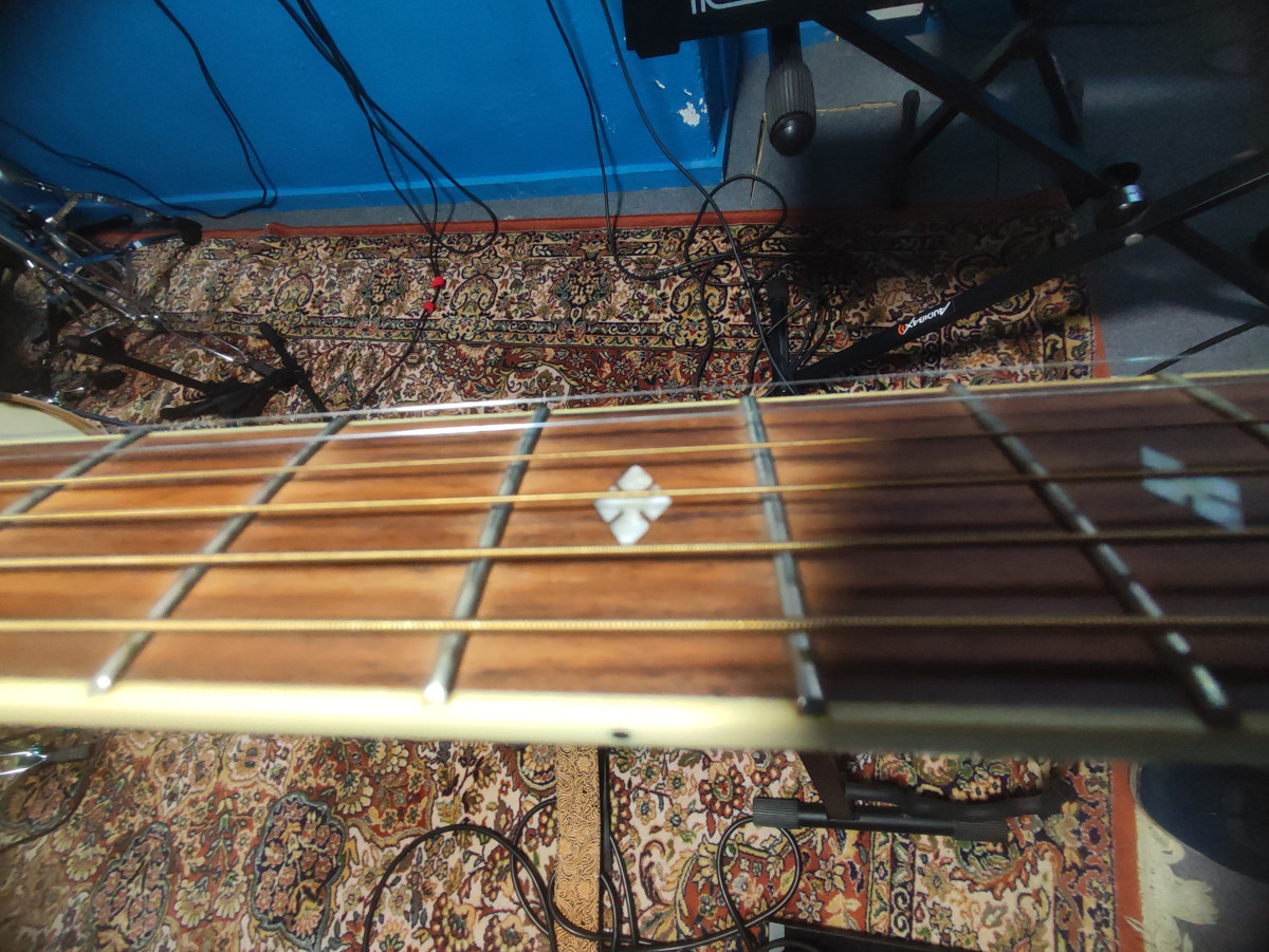 Se trata de la guitarra de mi vecino que quiere vender y no se apaña con las nuevas tecnologías. La he revisado y no le veo defectos al instrumento. Está bien cuidada y acabada.