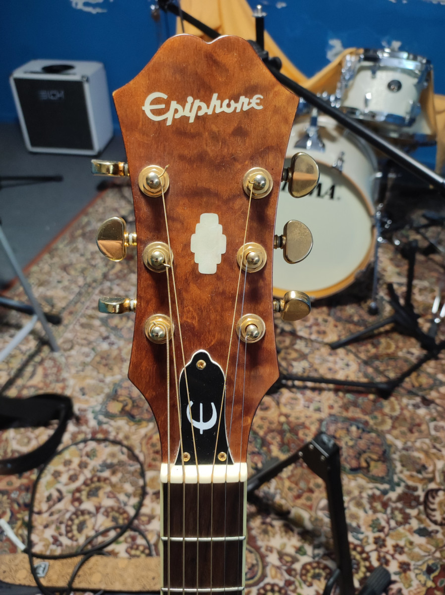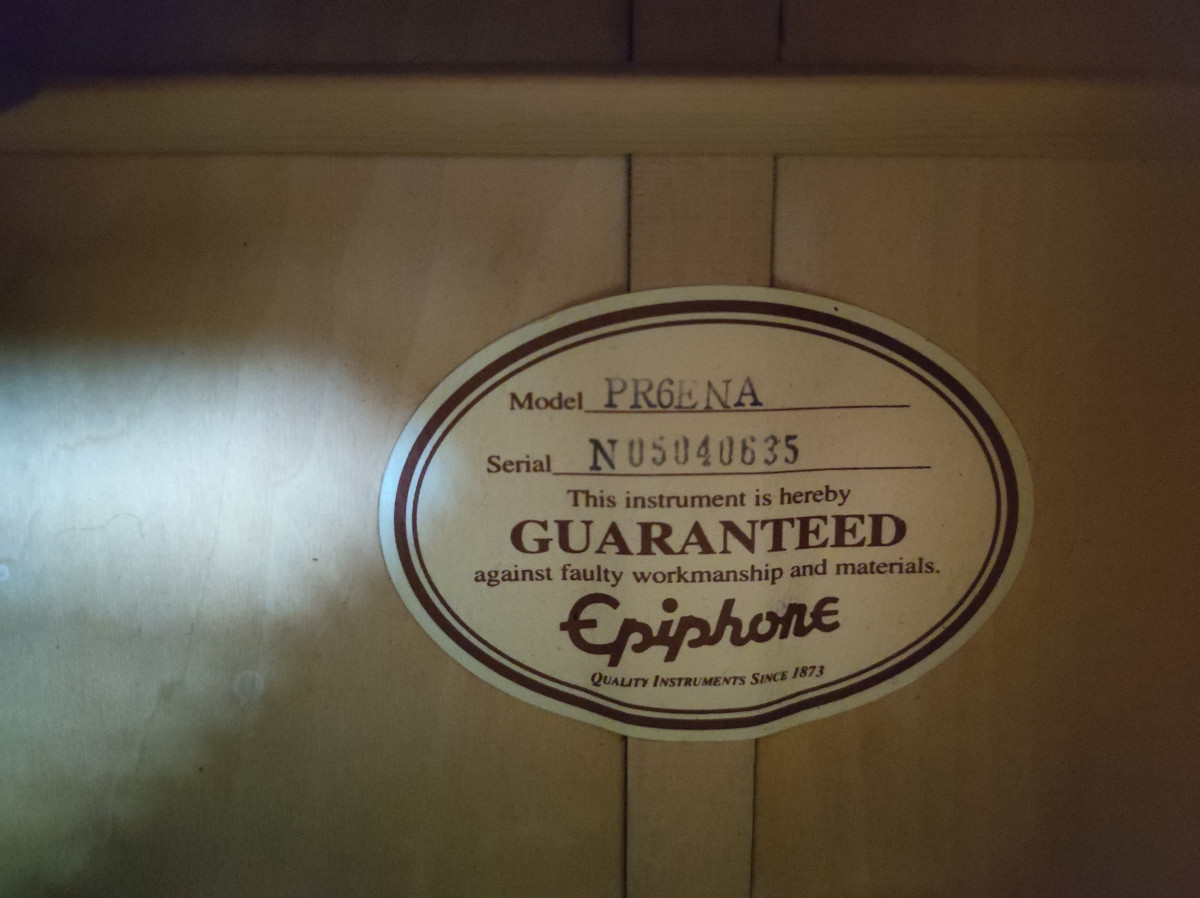 Guitarra electroacústica epiphone PR6ENA en perfecto estado. A penas usada. Pequeñas mascas de la correa en la parte trasera. La guitarra está como nueva, fabricada en corea en 2005. Afinadores Grover.