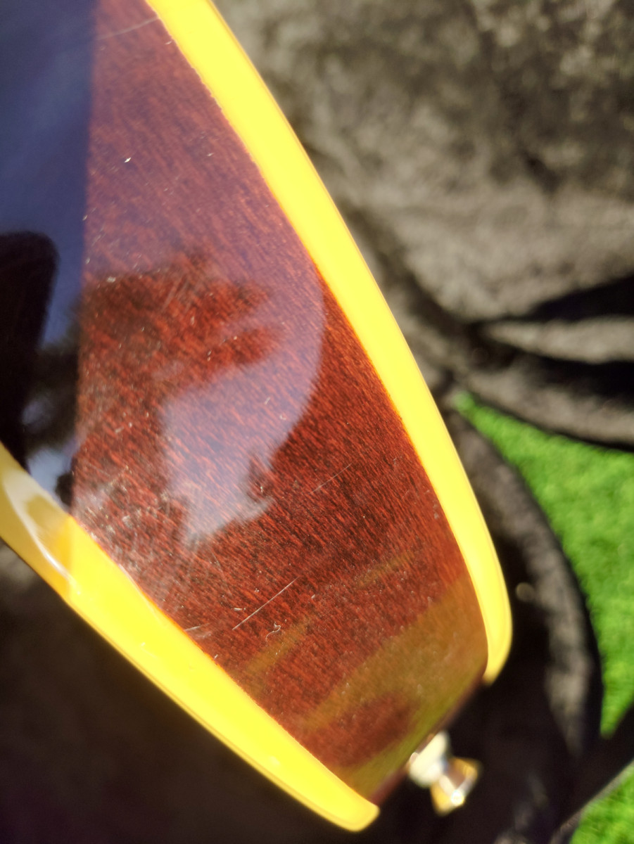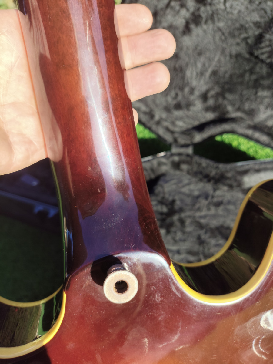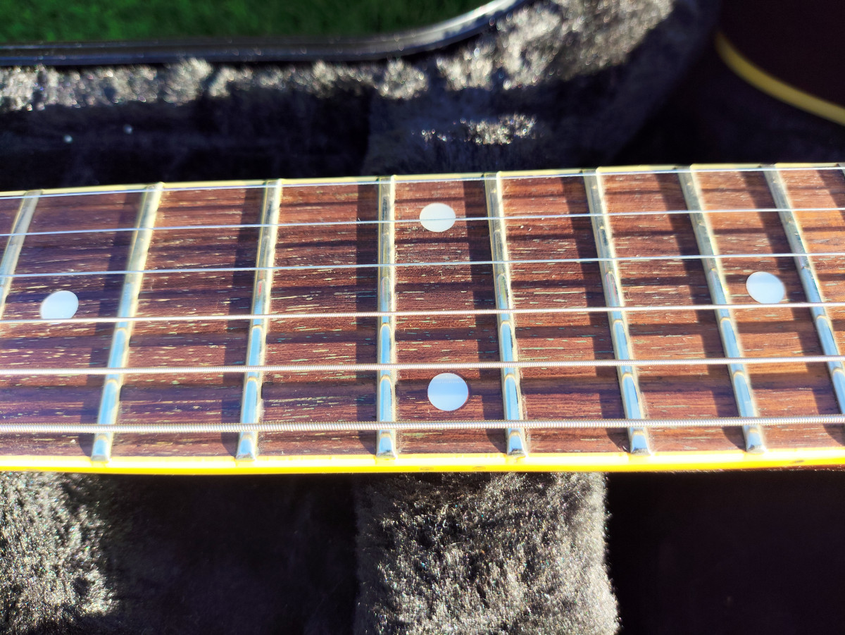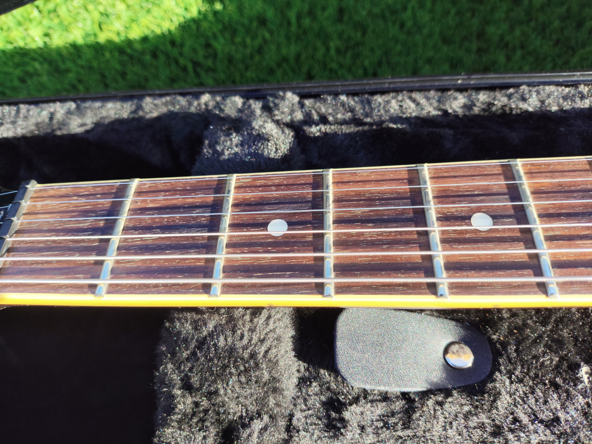 Fabulosa 335 fabricada por Samick Korea entre el 86/87 muy poquitas unidades de éste modelo. No lleva números de serie ni etiqueta interior, éstas primeras fabricadas por Samick llevaban el número de serie en la pegatina de la pala y otra pegatina con el modelo exacto y el made in korea en la pegatina dorada del zoque del mástil. El modelo exacto y que alguien me corrija es el Dot ES335 reissue . No es la dot ya que ésta era íntegramente de arce y mástil en tres piezas, ni Sheraton, ni el es 339 aunque lleve el mismo logo. Lo confirma la espiga de la pala ,los aros y el mástil de una sola pieza en caoba. La entregaría con el estuche Gator que se ve, dañado por el extremo pero totalmente funcional, cierran todos los cierres perfectamente. Recientemente sacada del Luthier para ponerla a la venta, cuerdas nuevas, pulido de trastes, hidratación de mástil y setting profesional. Guitarrón nada que ver con el actual inspired. Suena que no te lo crees.,tonazo gordote, potente.y con unas cualidades y calidades de maderas increíbles, el diapasón es excepcional de palo rosa. Trastes originales 99%sin marcas....una 335 en toda regla en cuanto a medidas y especificaciones.Guitarra ya de colección casi...