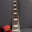 El color se llama washed cherry sunburst, un clásico de las Les Paul del 58 y 59, y la forma del clavijero es inspirado en el de la factoría Gibson en Kalamazoo de dicha década.