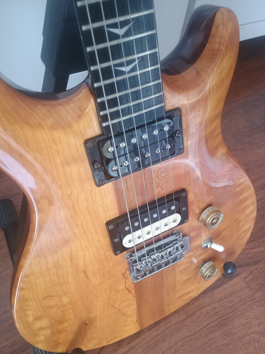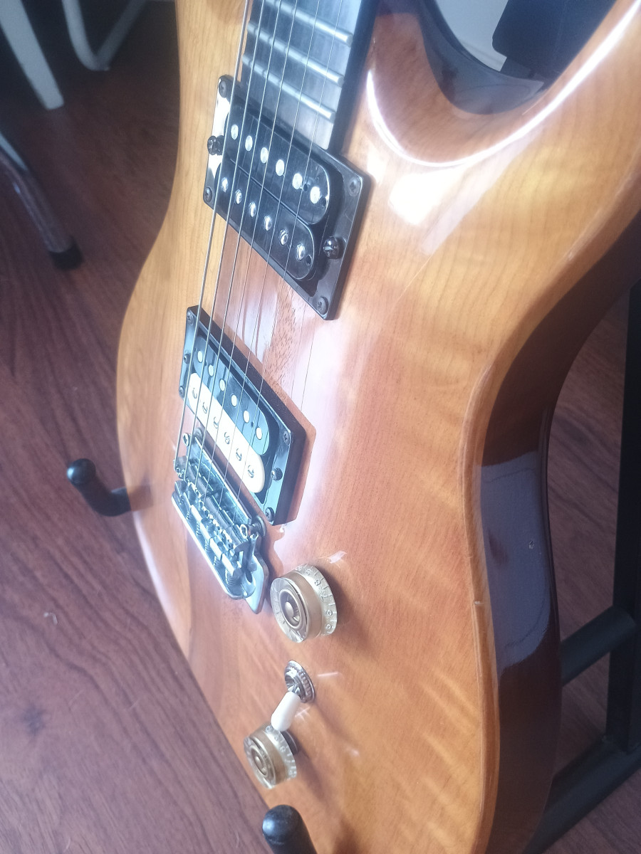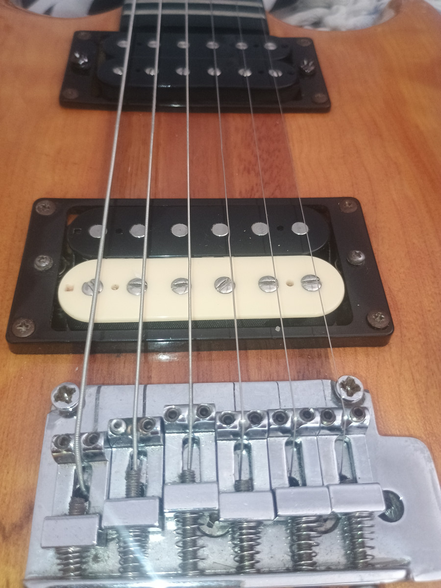 Ahora mismo monta una Seymour Duncan en el puente tipo Zebra y una humbuckers de una Jet en el mástil , se entregan las pastillas EMG originales, se a cambiado el selector de tres vias
