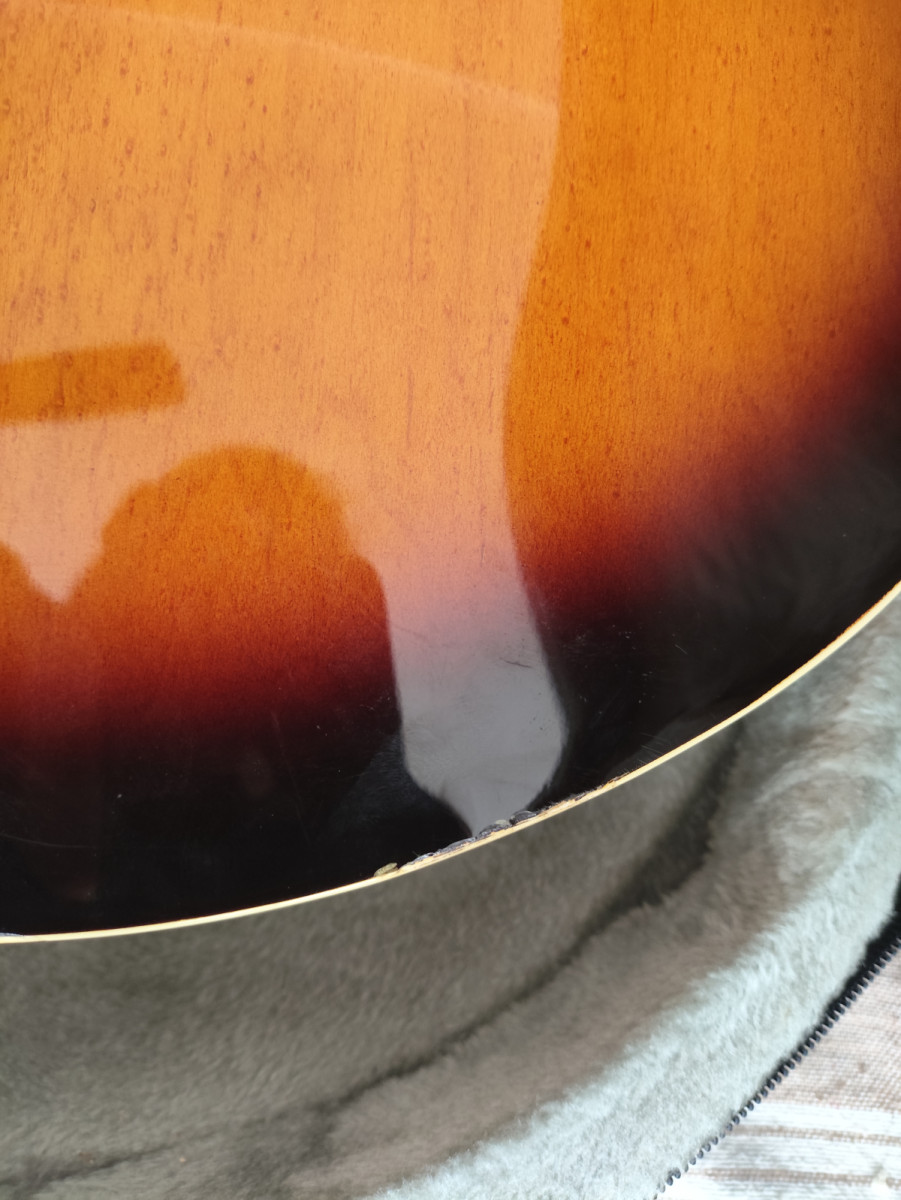-Vantage 635 V Korea, hecha por Samick desconocida para muchos, pero una guitarra espectacular. Con una magnífica trasera en arce laminado ojo de pájaro,aros y bloque central de caoba.Tiene un pequeño ding, nada importante. Tiene la pastilla del mástil invertida al estilo Petter Green, que se puede revertir sin problema. Suena que no te lo crees. 450 con estuche.
