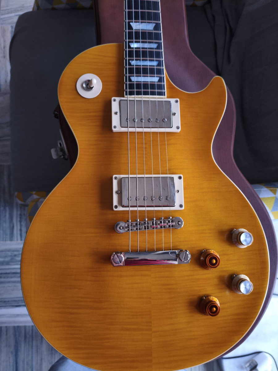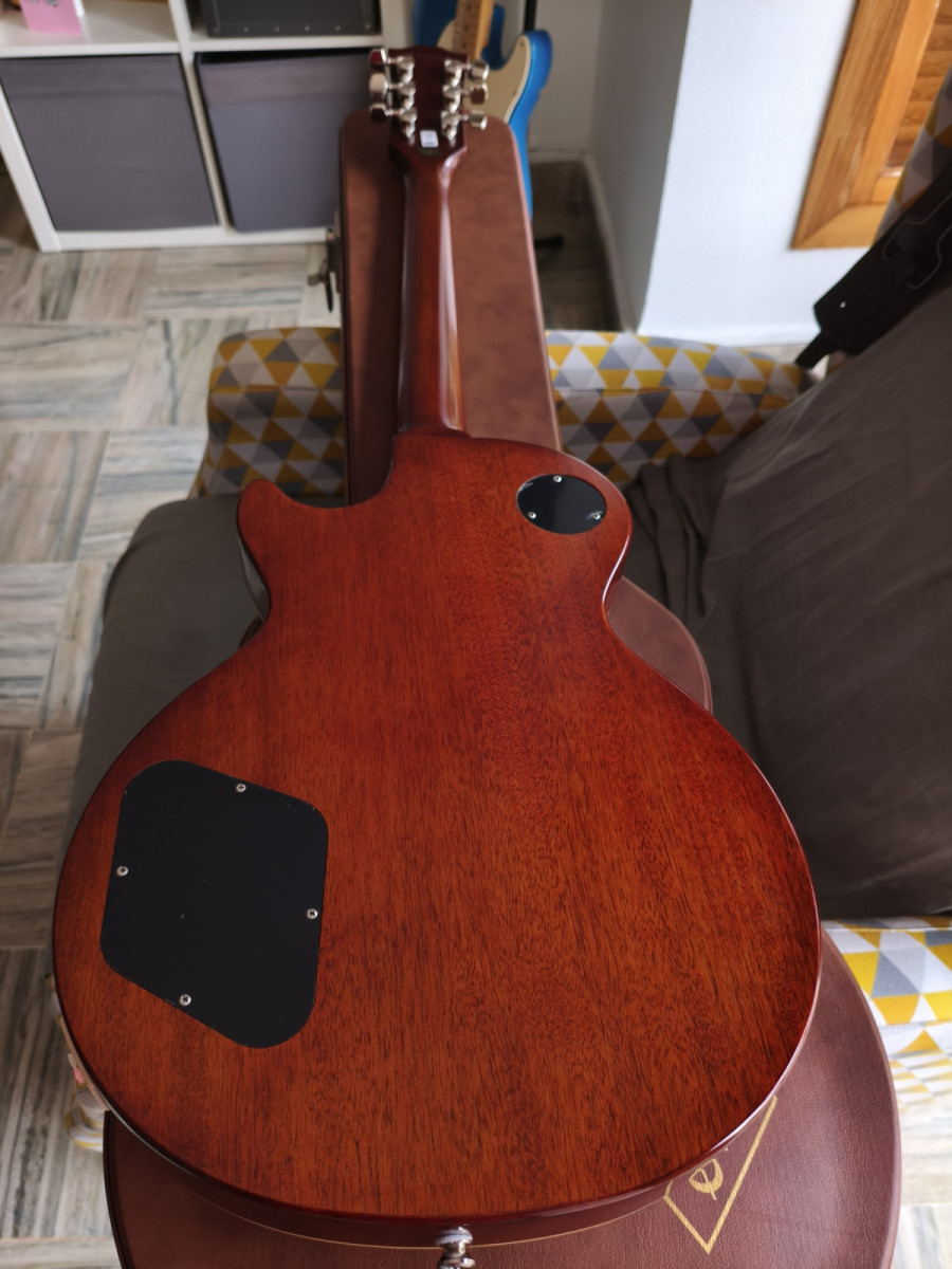 La guitarra está nueva, acabada de pasar por luthier para su venta, encordada con Elixir 10-46, está de muerte, pero definitivamente no soy de Les Paul.
