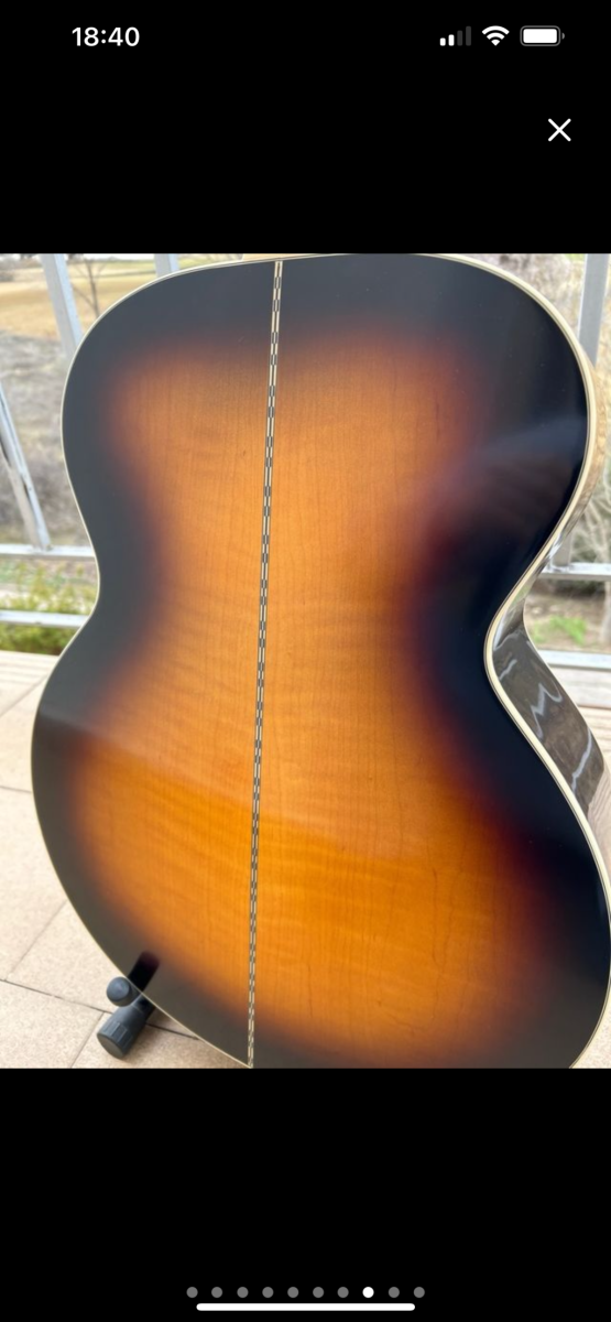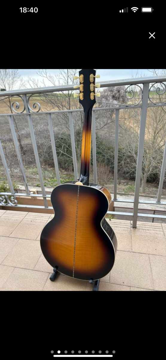 Vendo esta preciosa Epiphone J-200 comprada en el año 2022 en la tienda Málaga 8. Está en perfecto estado, como nueva, tan solo tiene un par de rascaditas leves en el acabado. No se han hecho ensayos ni dado bolos con ella, siempre en casa, siempre mimada. Está construida en arce flameado macizo, nada de contrachapados. No tiene modificaciones, tiene un sistema piezo fishman de serie.