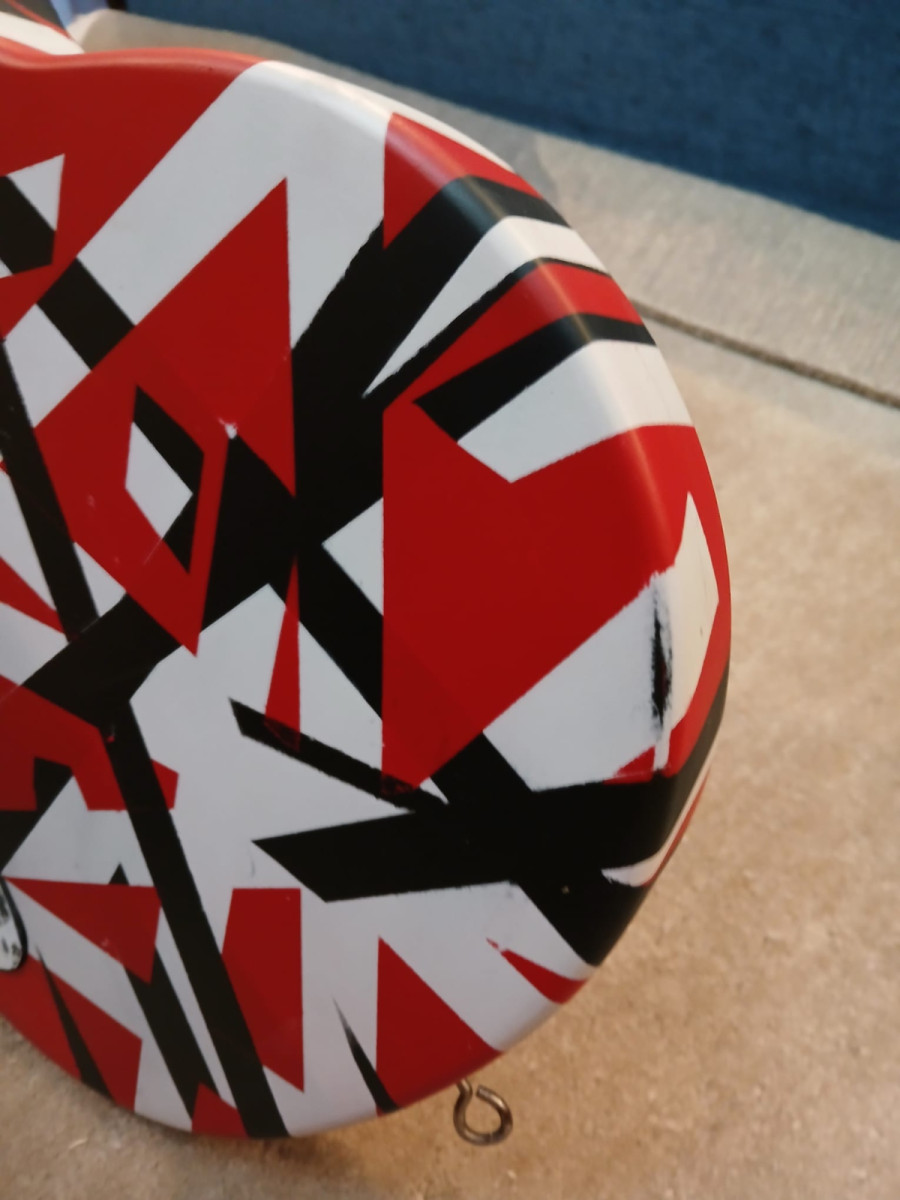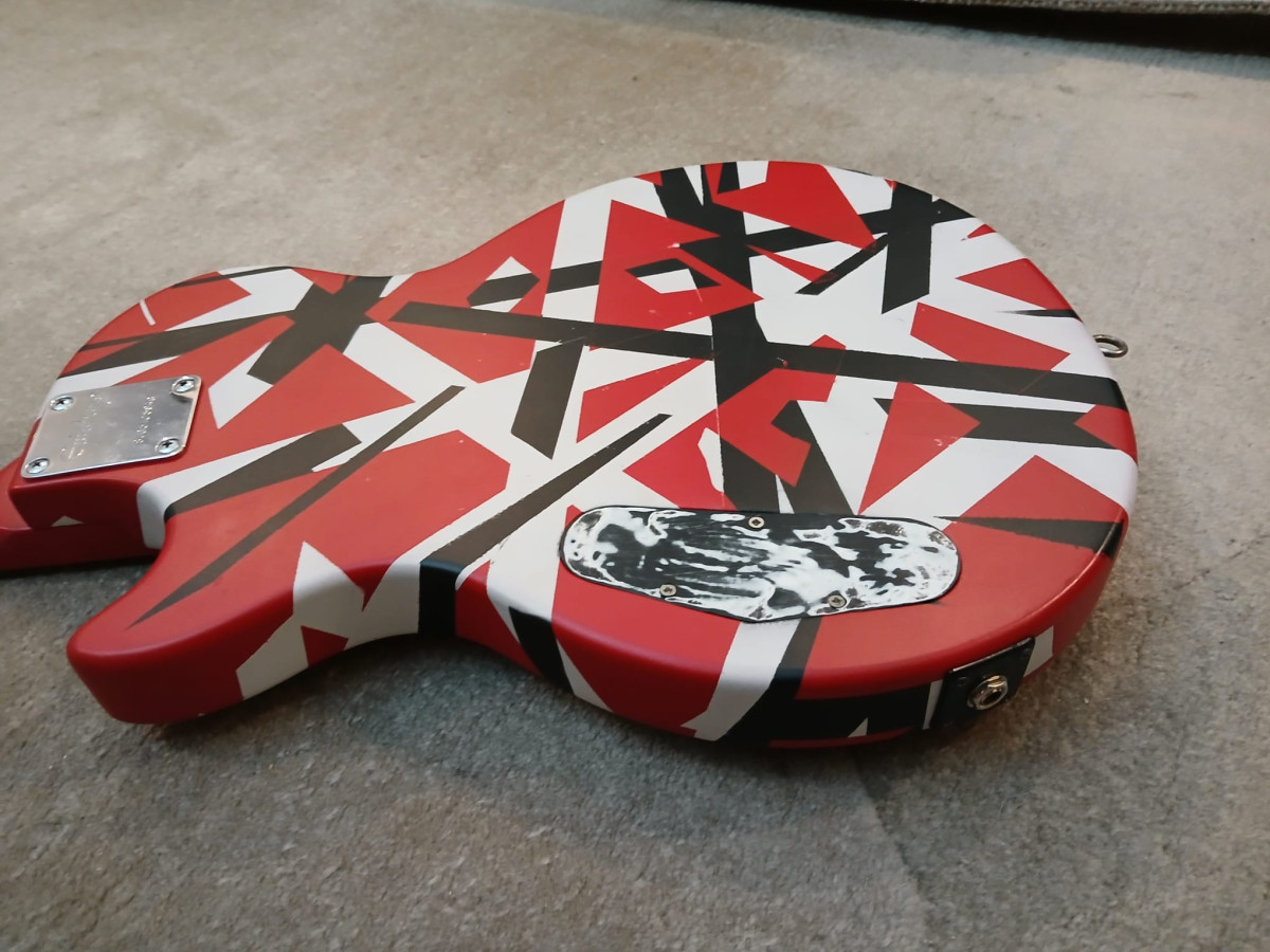 Las diferentes capas de pintura tienen un sutil relieve para conservar la sensación auténtica de la Frankenstrat, como hizo Van Halen en la Franky, aunque a diferencia de la Franky, esta está barnizada en acrílico mate tanto en cuerpo como en mástil, con un tacto sedoso muy agradable que protege el acabado y asegura su durabilidad.