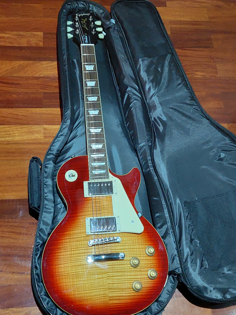 Con un cuerpo clásico de caoba con una tapa de arce y cuello de caoba con espiga de cuello largo. Desarrollado con humbuckers ProBucker con cableado estilo años 50 y electrónica CTS. Disponible en oro metálico, Vintage Sunburst y Heritage Cherry Sunburst. La larga amistad de Epiphone con el Sr. Les Paul comenzó en 1940 cuando Les construyó una de las primeras guitarras eléctricas de cuerpo sólido del mundo mientras trabajaba de noche en la fábrica original de Epiphone en Manhattan. La primera guitarra de cuerpo sólido de Les, apodada The Log, inspiraría el Les Paul Standard, lo que muchos consideran la mejor guitarra eléctrica jamás hecha.