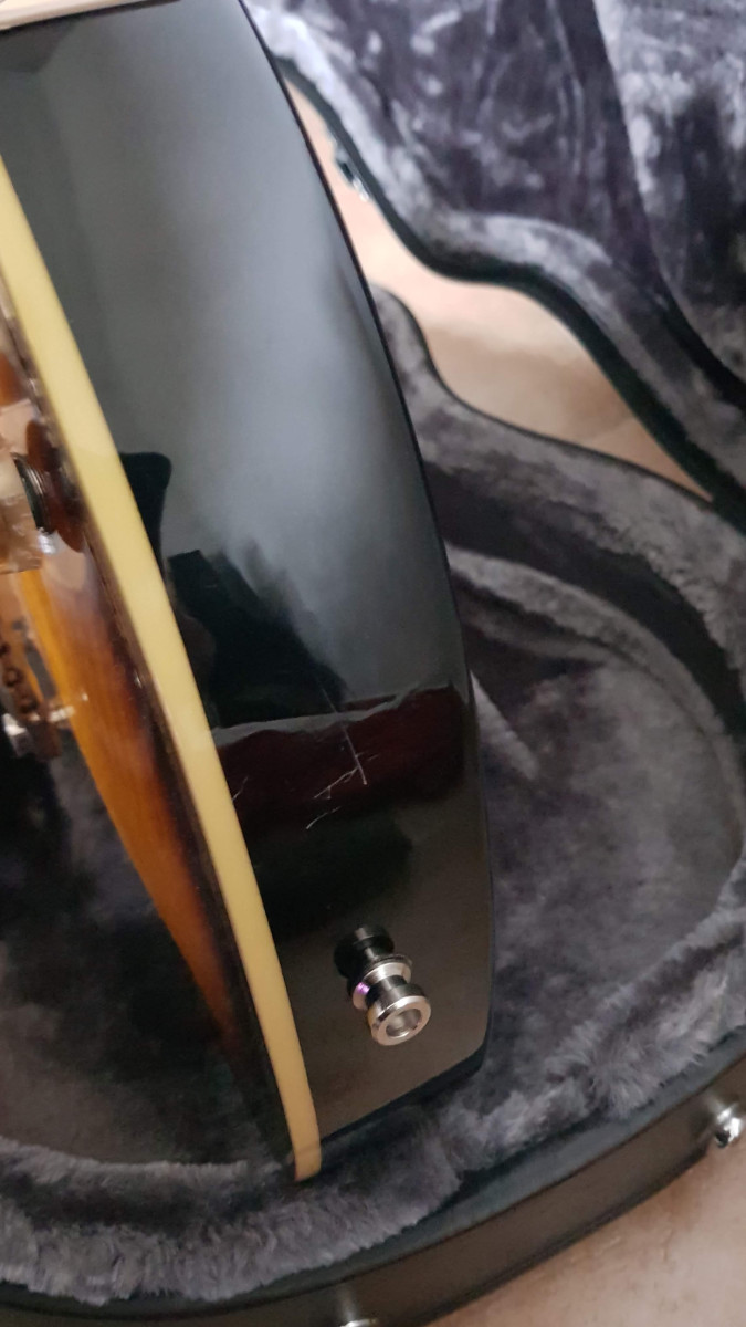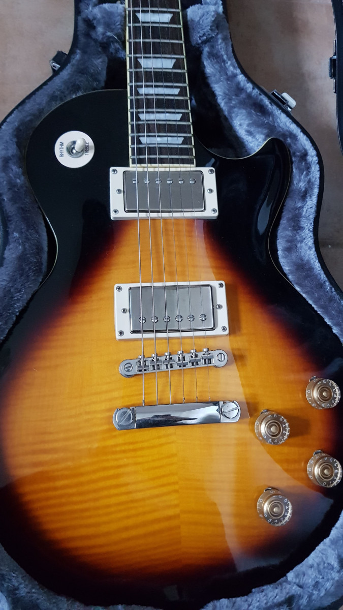 Epiphone ya descatalogada, en su día de la gama más alta de la marca. En perfecto estado salvo detalles cosméticos que se aprecian en las fotos, del roce de la púa y una marca que creo que es de apoyarla en el stand. Por lo demás está como nueva, la vendo porque han entrado dos les pauls y alguna tiene que salir. Todo original incluyendo las pastillas gibson 57, clavijeros grover, etc (detalle de specs en la última foto).