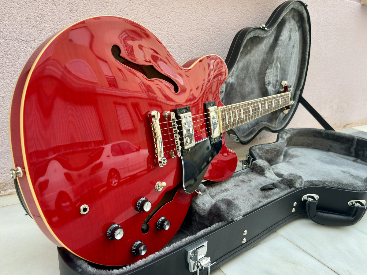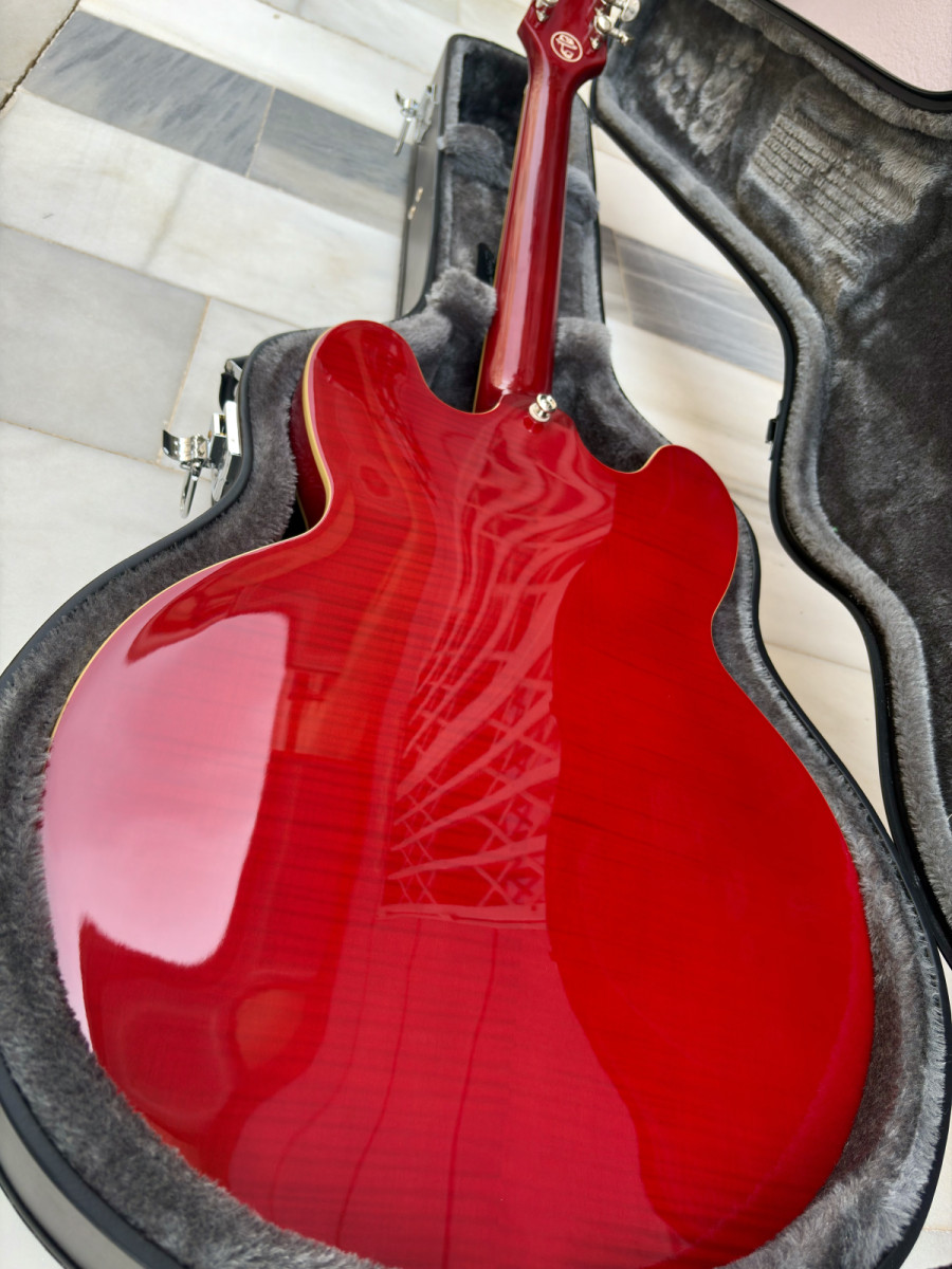 Vendo esta preciosa Epiphone Marty Schwartz ES-335 comprada nueva en Thomann en septiembre 2024, aún en garantía ya que tiene solamente 9 meses, así que como veis está completamente nueva.