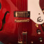 Guitarra eléctrica Epiphone Riviera en acabado Sparkling Burgundy. Comprada en el 2021 como nueva. Unicamente tiene un pequeñito golpe en el canto como muestro en la última foto. Es el único desperfecto que tiene. El resto esta perfecto.