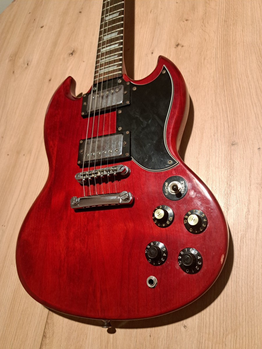 Fantástica SG, cambiadas clavijas autoblocantes, pastillas de fábrica. La vendo por no usarla pero es una muy buena guitarra. Se vende con funda rigida GIBSON valorada en mas de 150 euros. Si es verdad que tiene unos cuantos años en su momento costaba unos 900 euros