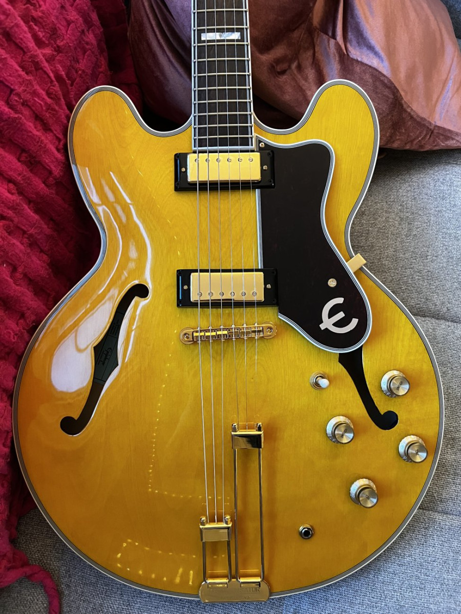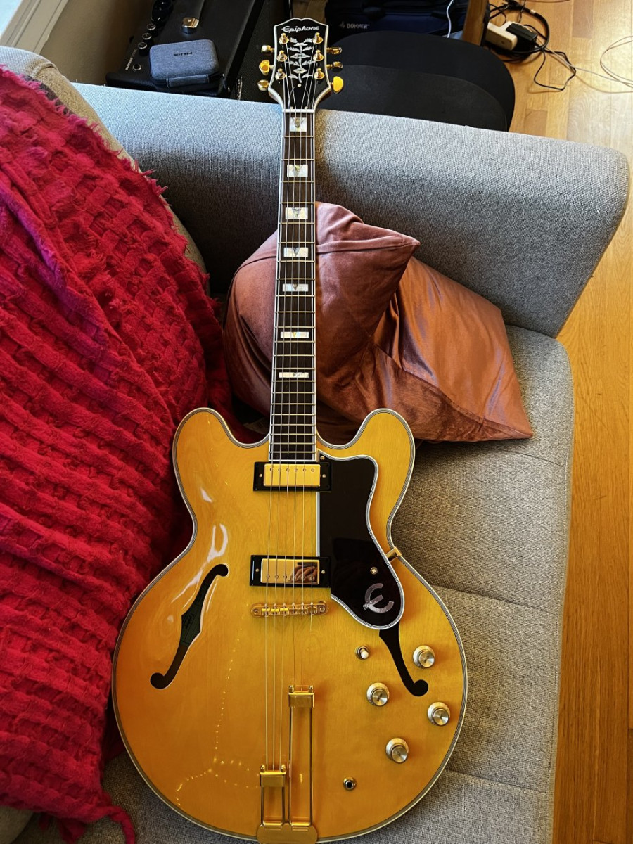 A la venta guitarra eléctrica epiphone Sheraton, el último modelo que ha salido, con el frequensator, en acabado natural, incluye funda premium que viene con éste modelo, está impecable, sin marcas y los trastes prácticamente nuevos.