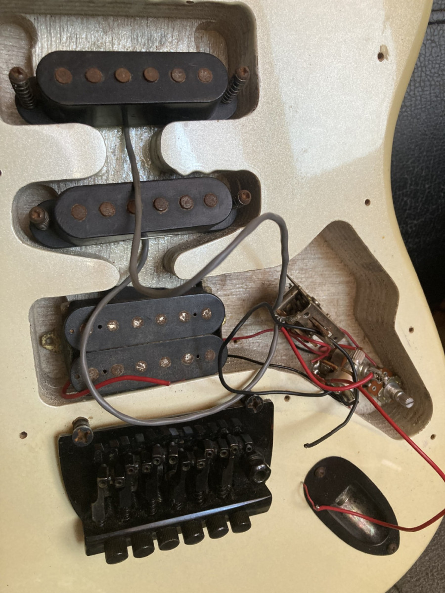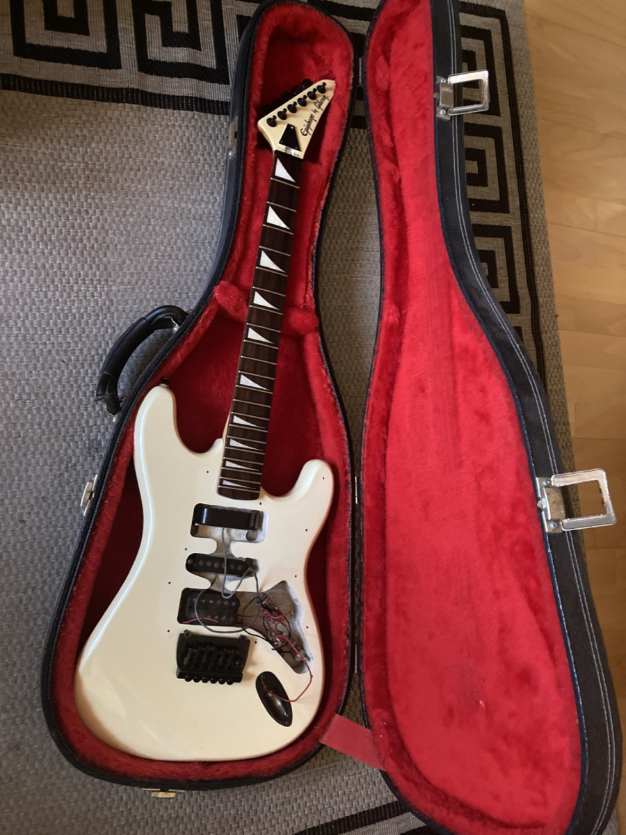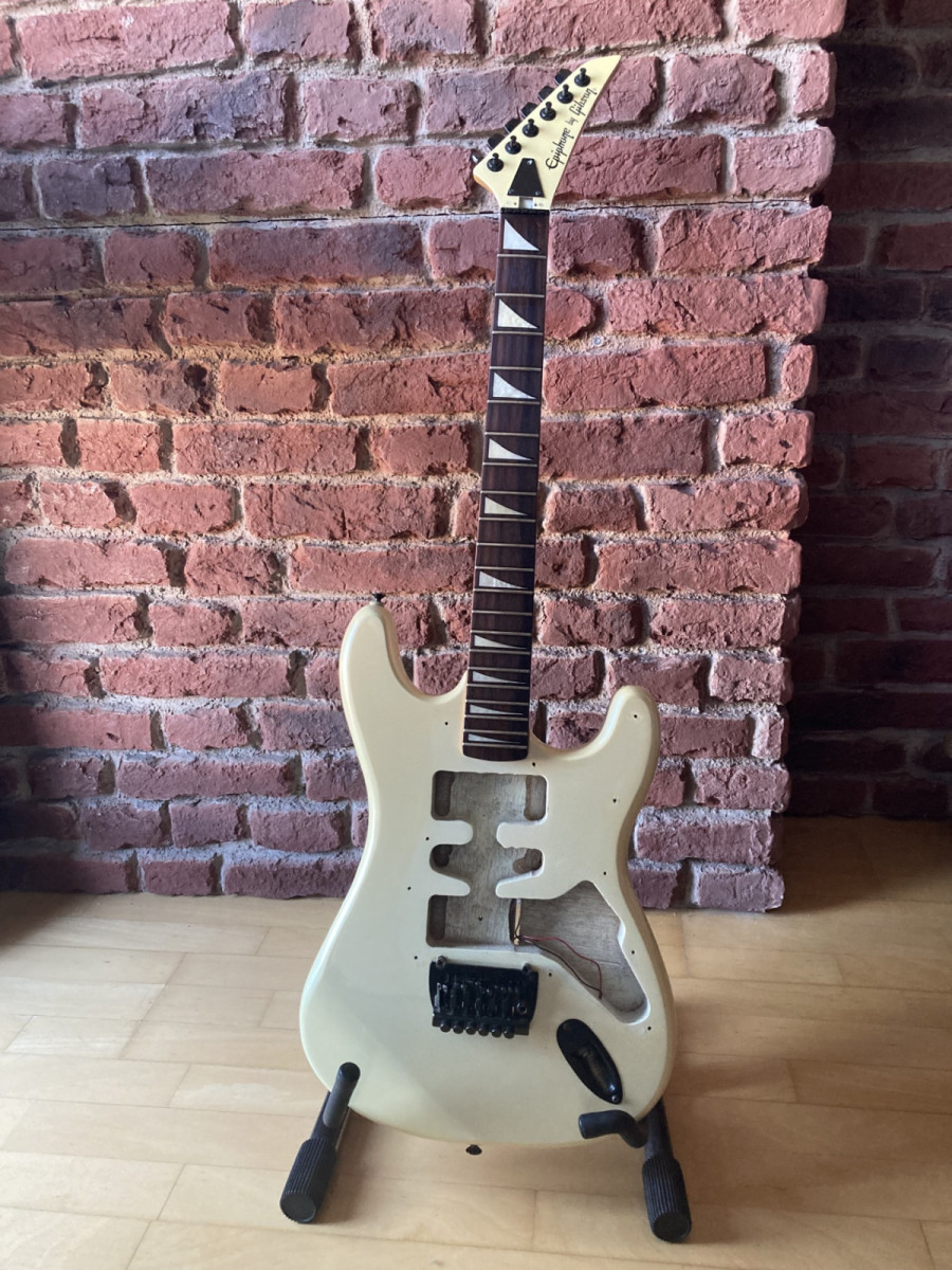 Epiphone S-300 de mediados de los 80, le falta el golpeador, un botón de tono y conectar pastillas y cableado.