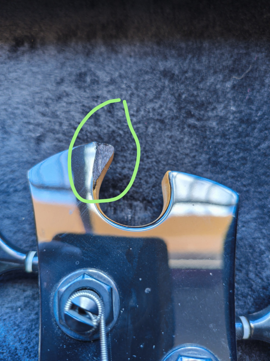 Tiene un golpe en una punta de la pala y una raya en la parte de atrás, marcado en las fotos.