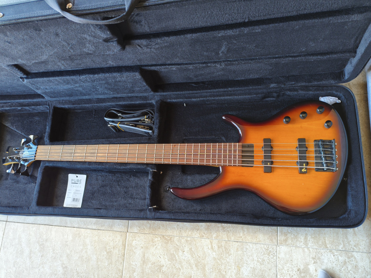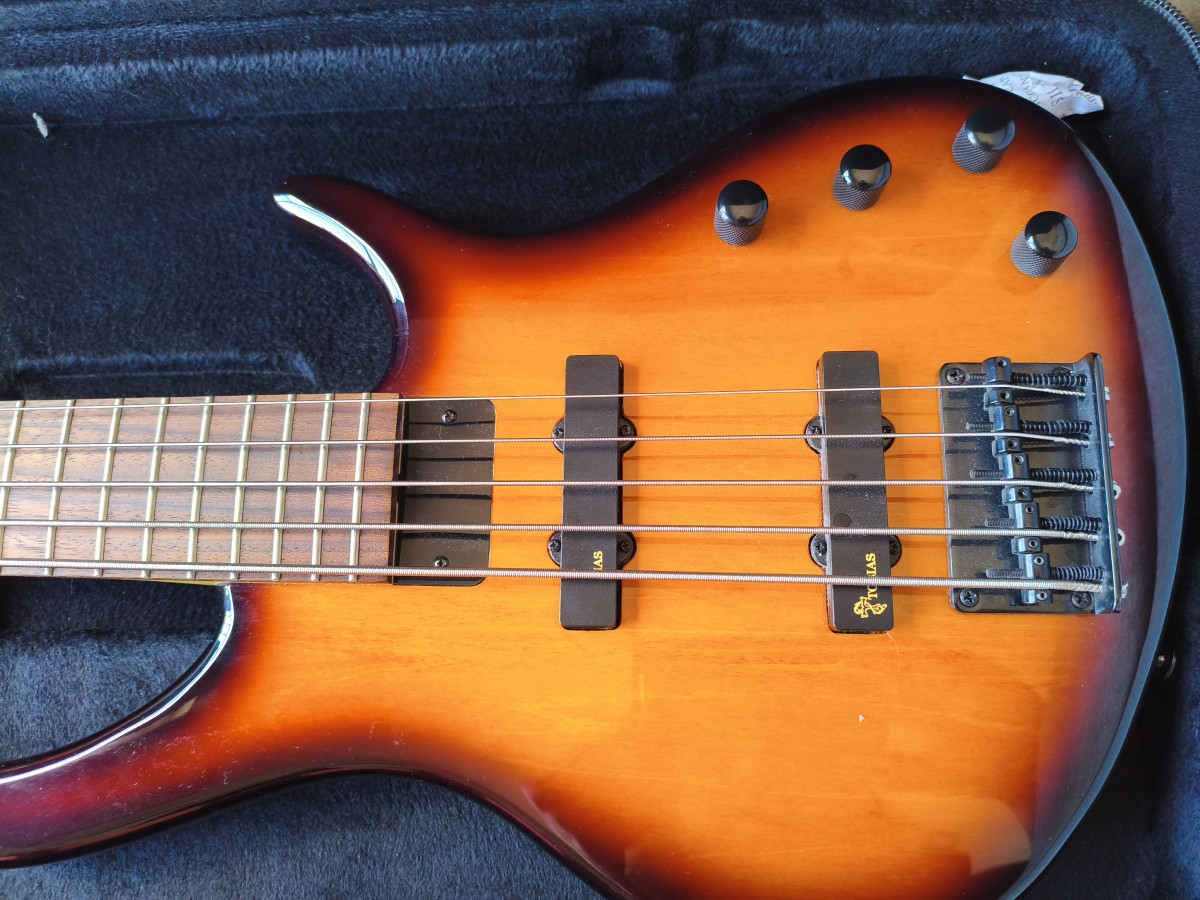 Un bajo majete de 5 cuerdas y un bonito acabado. Incluyo el estuche de Gewa semirrígido.