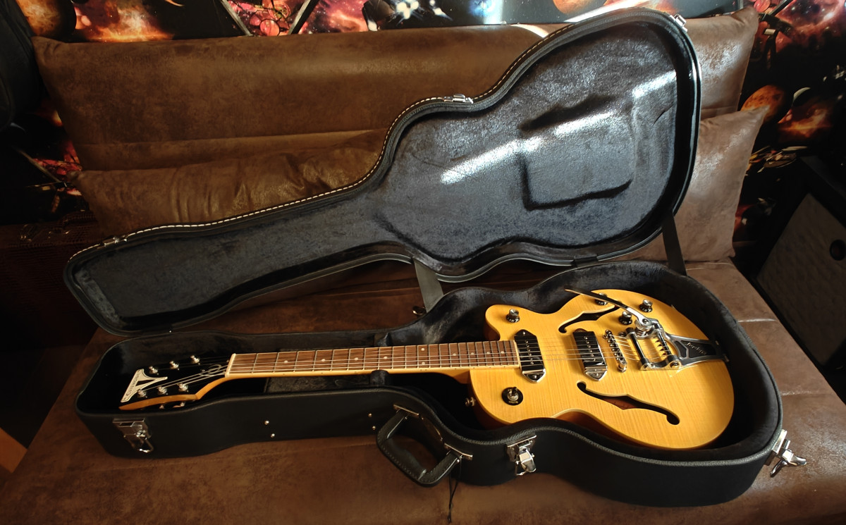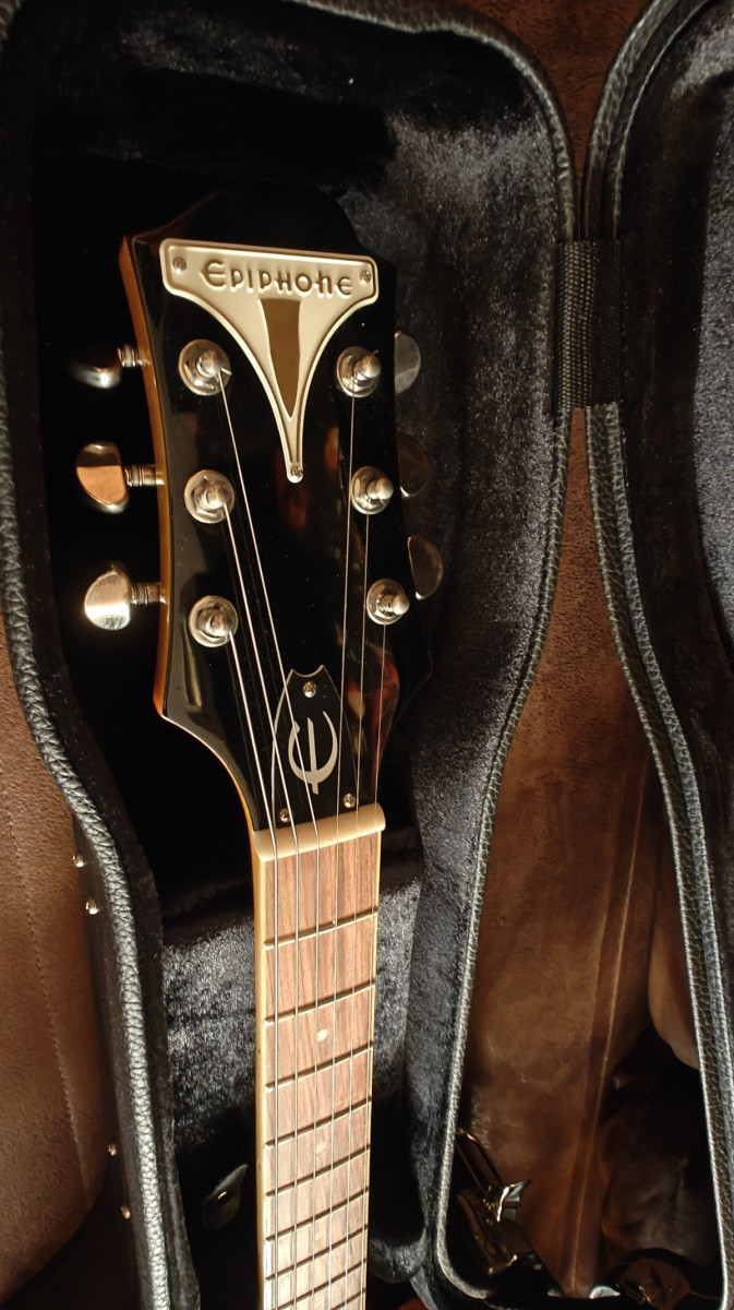 Epiphone nueva, semi-hueca, con Bigsbi, pastillas P90 originales, electrónica mejorada por el Luthier BullSkul y que encaja perfecta en el estuche.