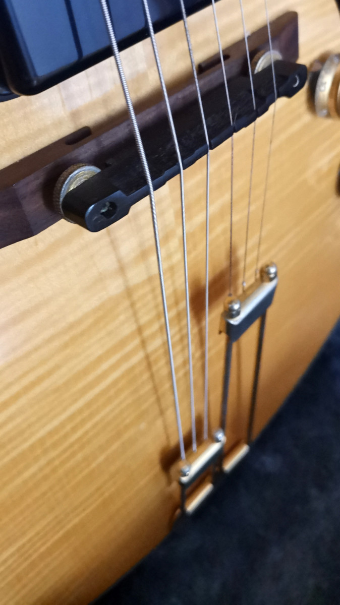 Toda original exceptuando las mejoras de el puente, y tambien las pastillas del puente y del mastil que fueron sustituidas por unas Epiphone Pro, las cuales suenan Gloriosamente. La del medio esta fuera de fase para conseguir ese sonido T-Bone Walker que te transporta a un bar lleno de humor, sudor y blues. No conservo ni puente ni pastillas originales.