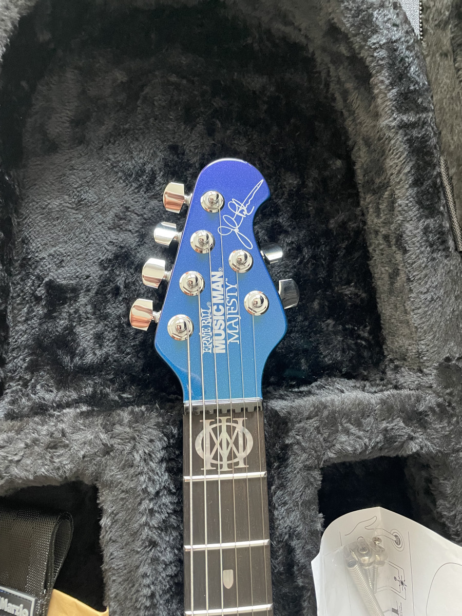 Up for sale an Ernie Ball Music Man John, Petrucci Signature Majesty, Kinetic Blue Color, 2019.
