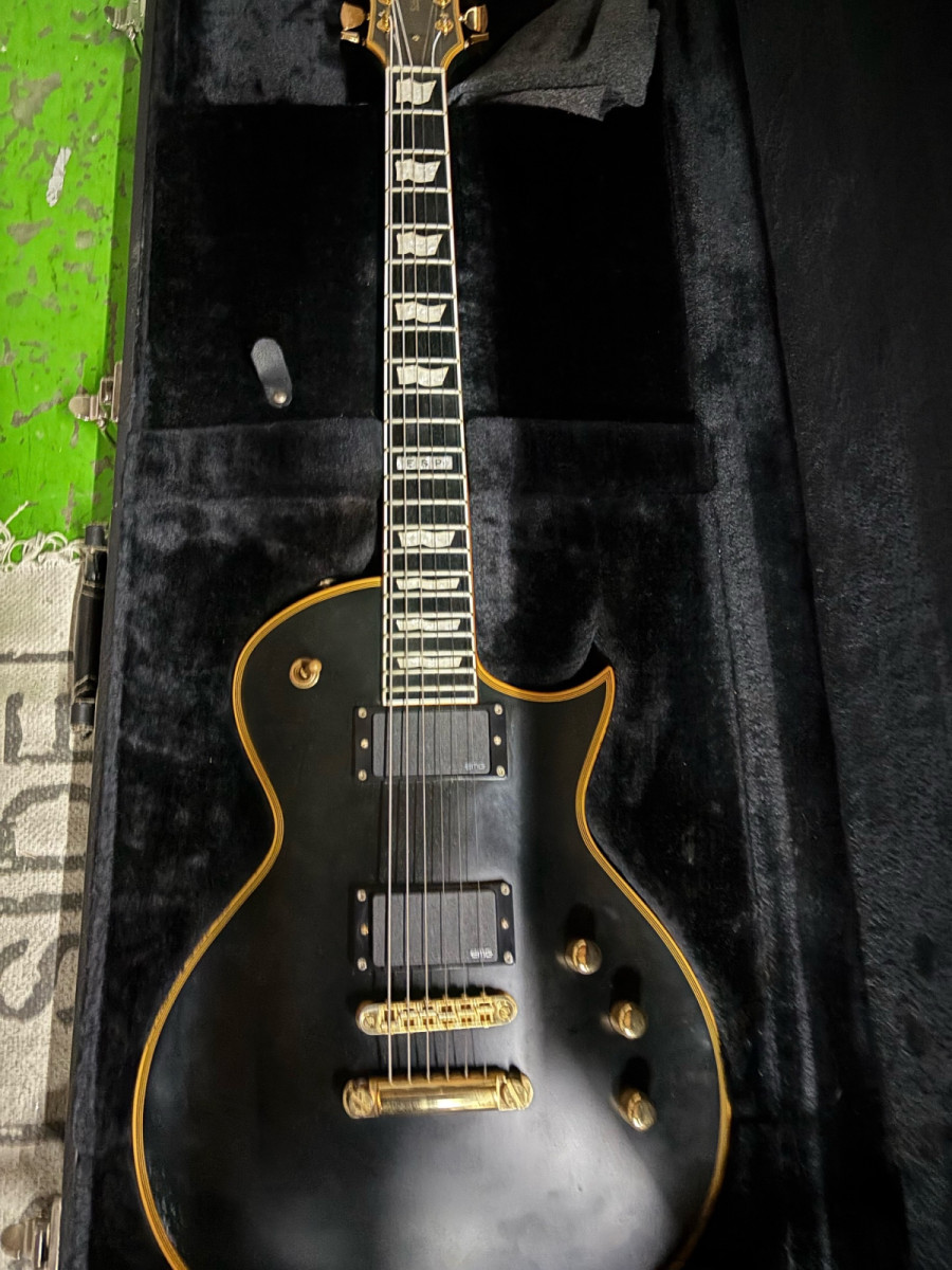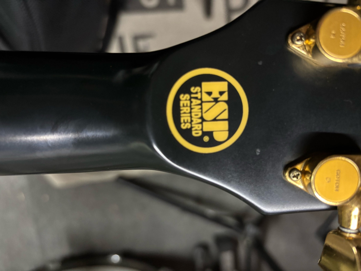 Guitarra eléctrica ESP Eclipse del año 2011. Presenta un acabado negro mate con detalles dorados.