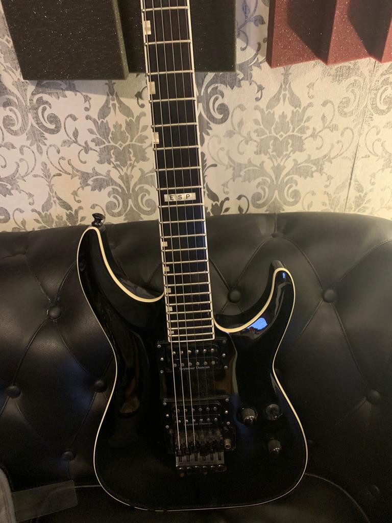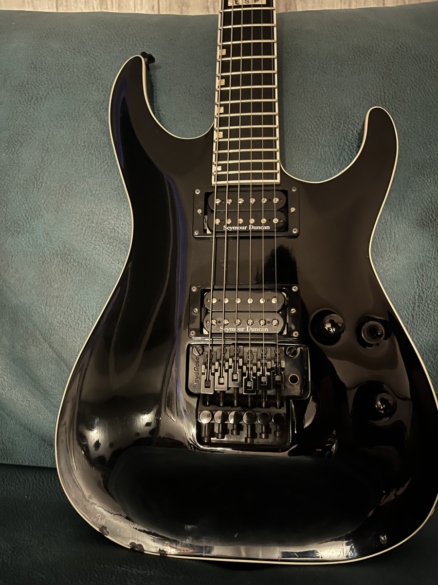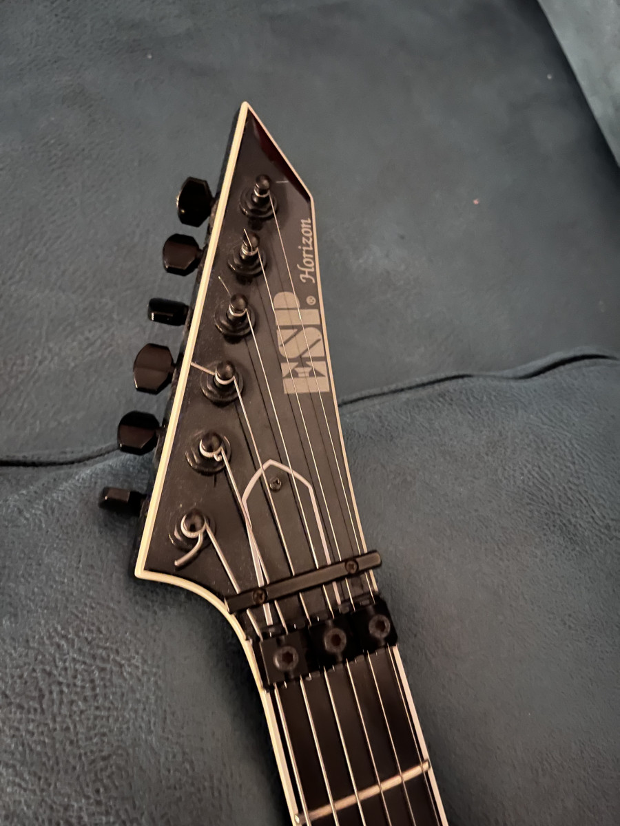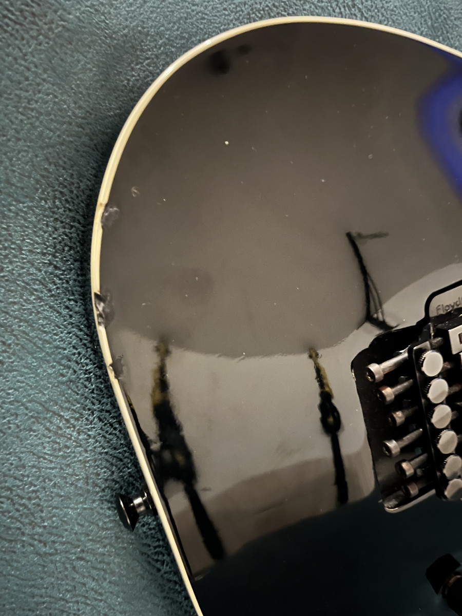 Saco a la venta esta Horizon Fr del 2006. La guitarra está en buen estado para los años que tiene, a excepción de unos picotazos en la parte posterior y uno en la pala. Por lo demás, como digo, está usada pero en bastante buena condición. He intentado que aparezcan en las fotos todas las marcas. El Floyd actualmente está bloqueado, pero se puede volver a dejar como estaba sin ningún problema.