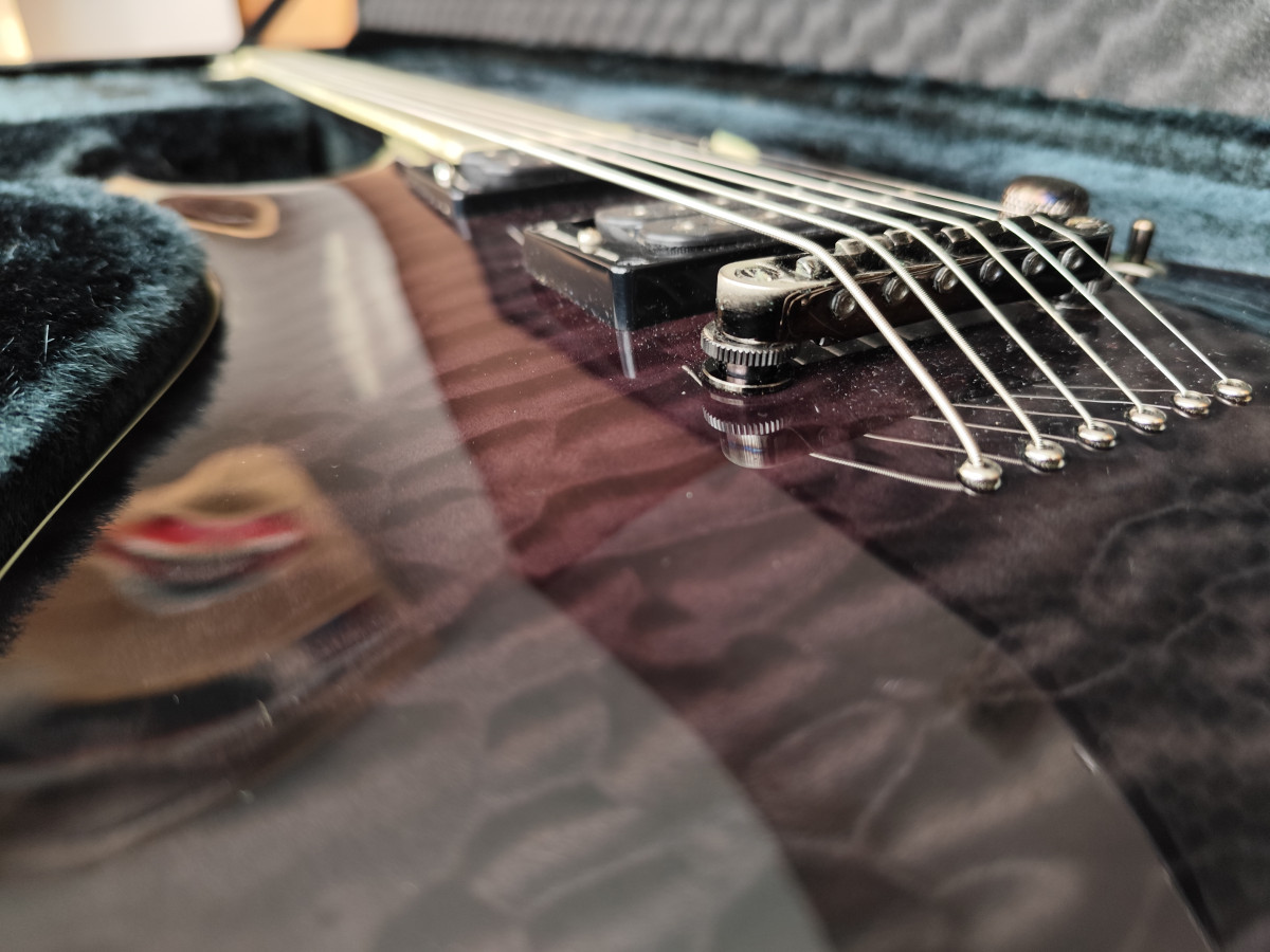Como mejoras lleva un set Seymour Duncan Titan, que le dan un sonido brutal. Cuerpo de caoba, con tapa de arce, diapasón de ebano......