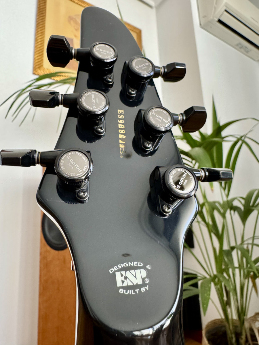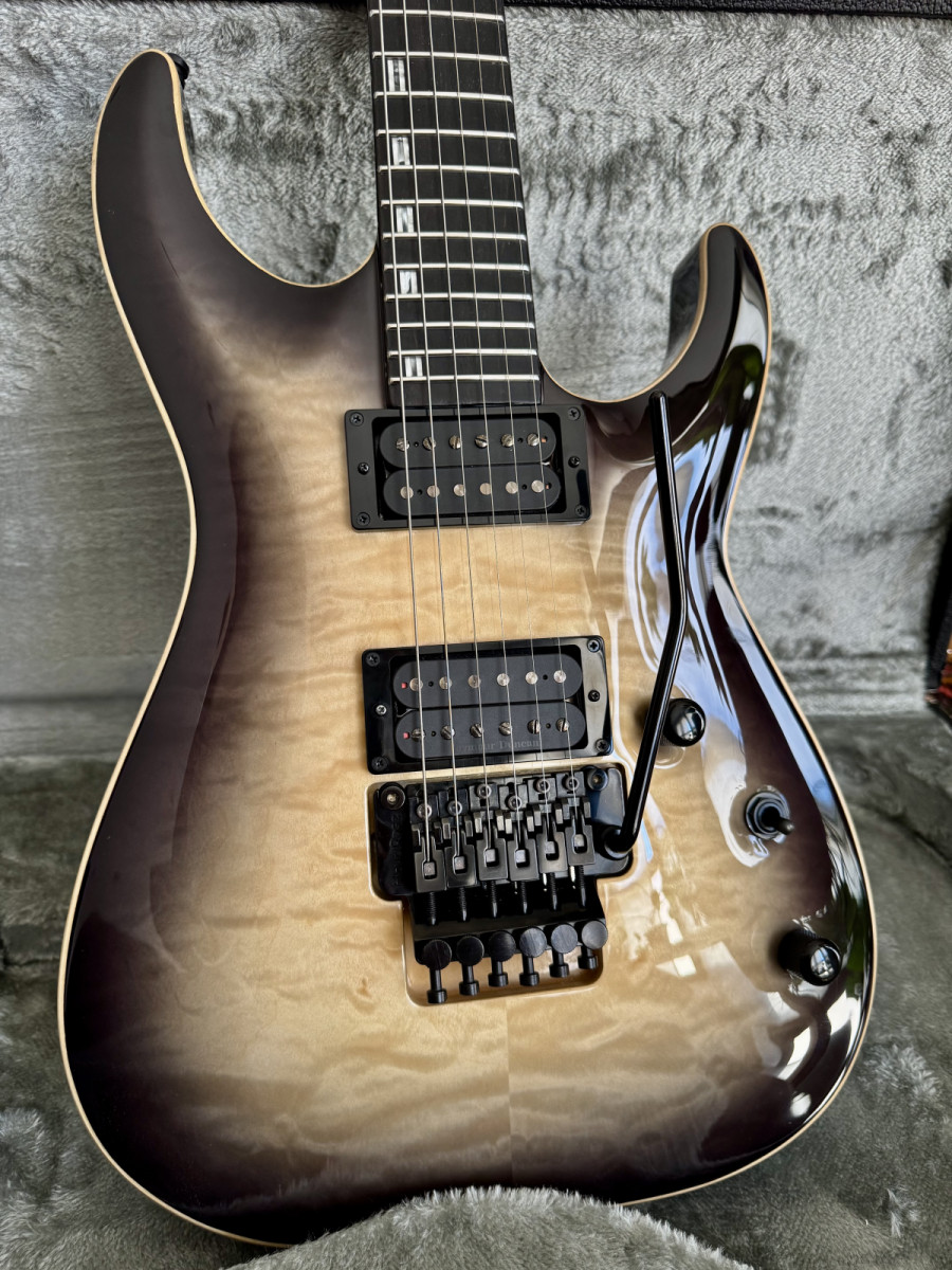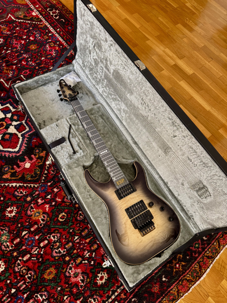 Floyd Rose Original, cierres de correa ESP y clavijas de bloqueo Gotoh. Esta guitarra incluye una pastilla Seymour Duncan Sentient en la posición del mástil para un amplio rango dinámico y una excelente articulación, y una agresiva Seymour Duncan Pegasus en el puente que es muy sensible y armónicamente rica, con división de bobina push-pull. Incluye estuche rígido ESP.