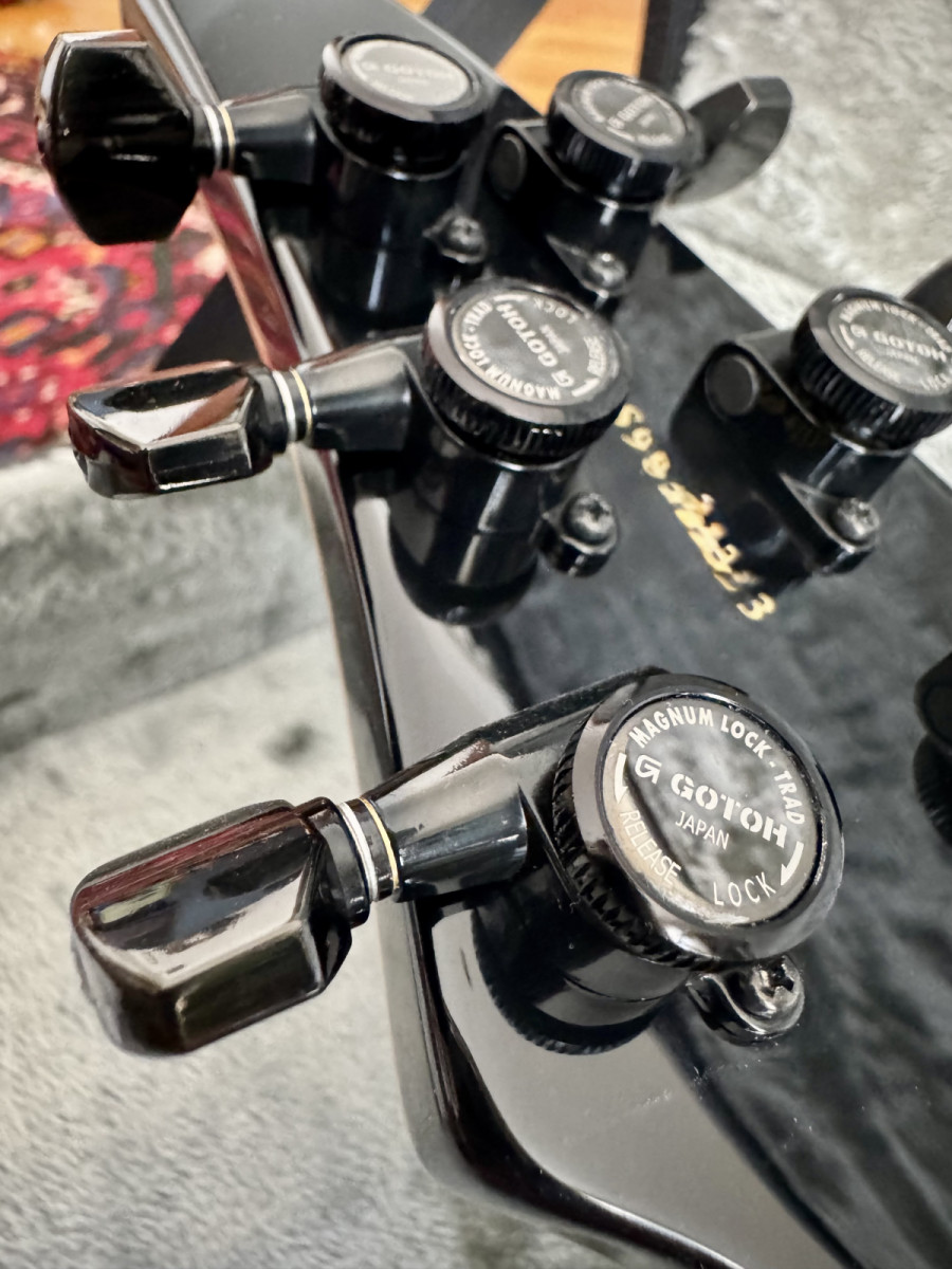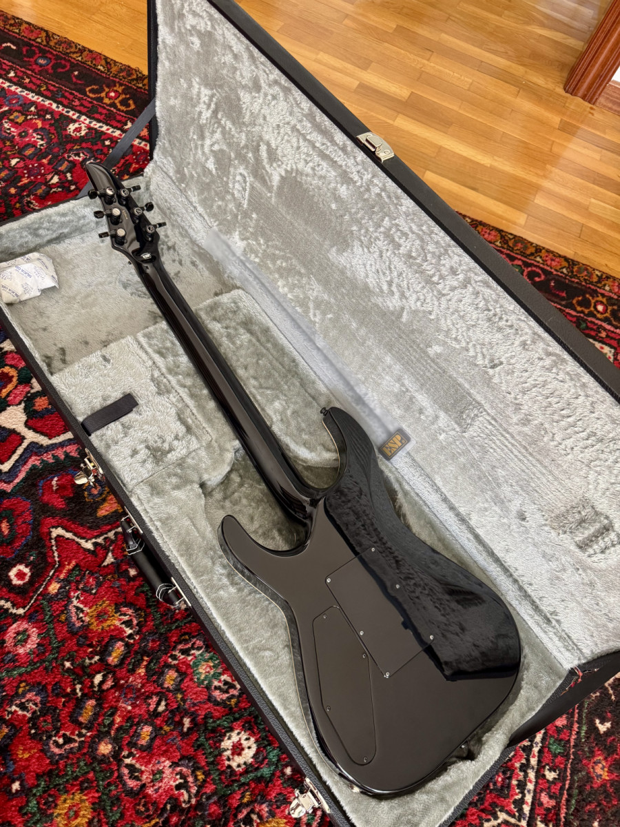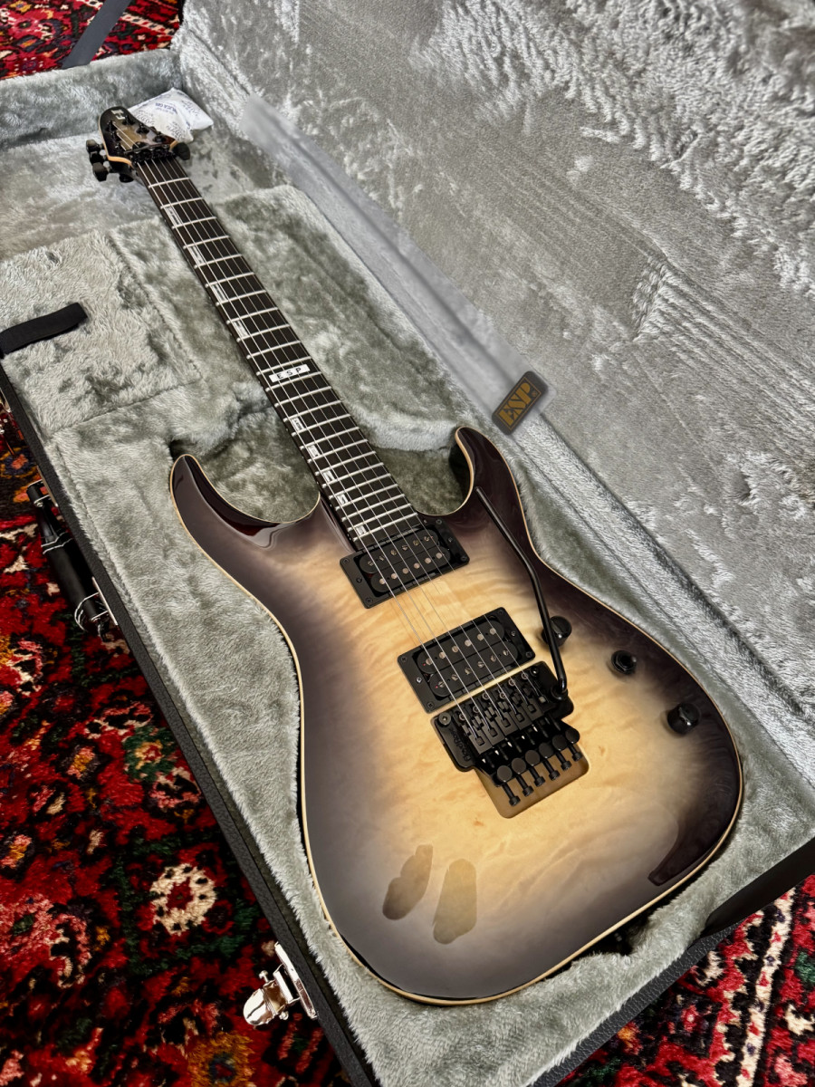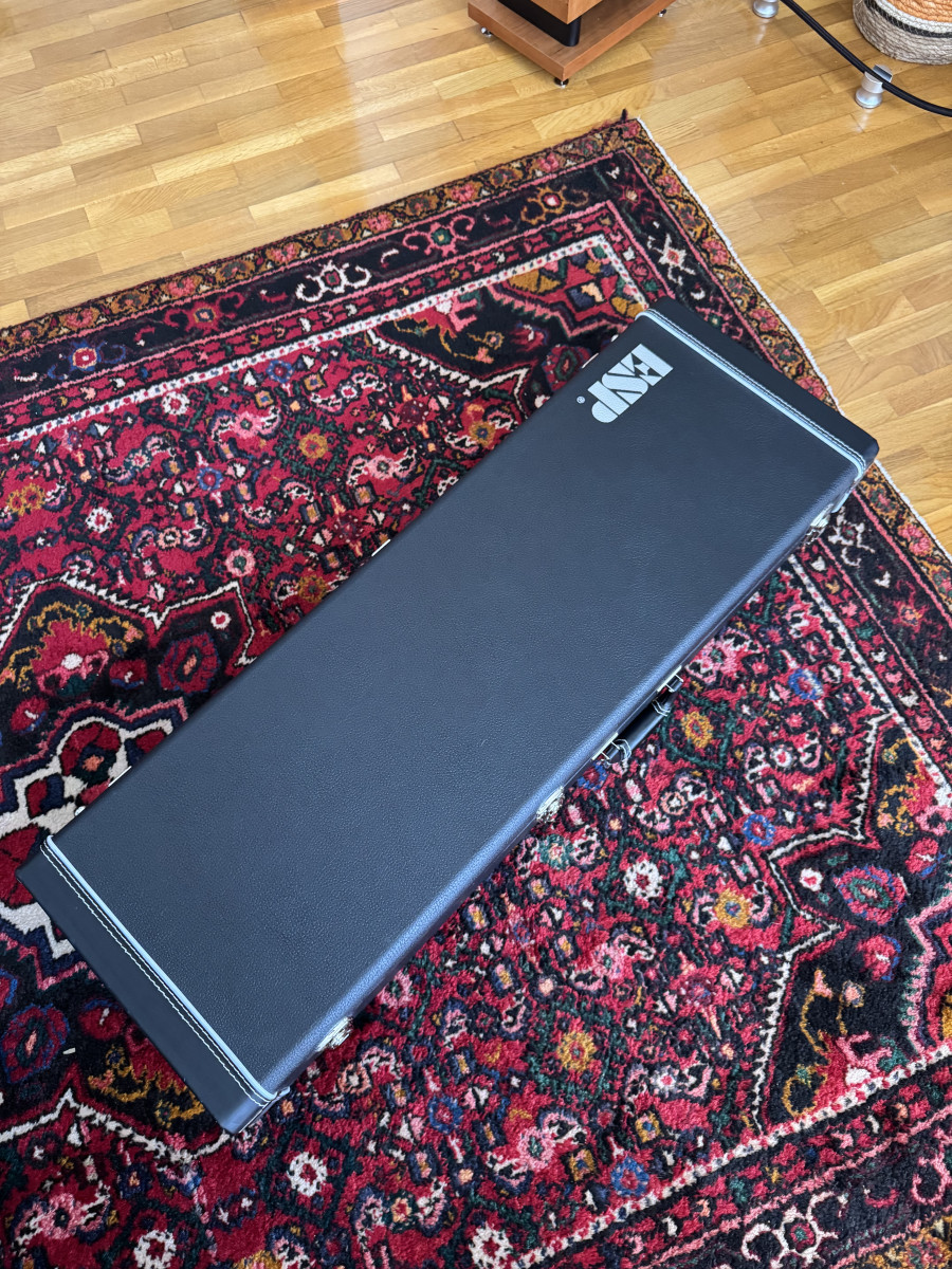 Floyd Rose Original, cierres de correa ESP y clavijas de bloqueo Gotoh. Esta guitarra incluye una pastilla Seymour Duncan Sentient en la posición del mástil para un amplio rango dinámico y una excelente articulación, y una agresiva Seymour Duncan Pegasus en el puente que es muy sensible y armónicamente rica, con división de bobina push-pull. Incluye estuche rígido ESP.