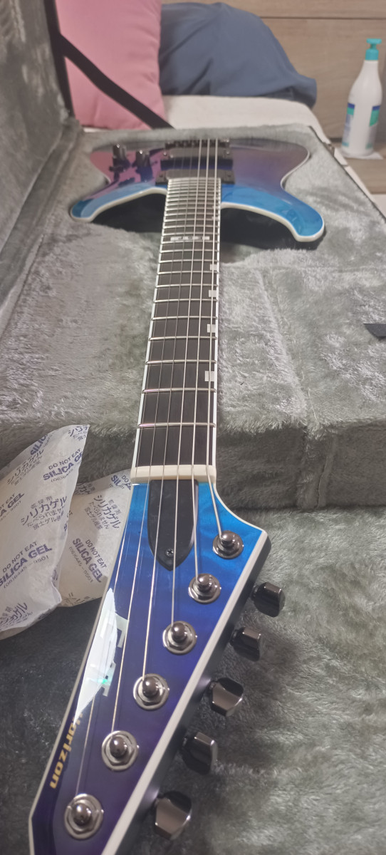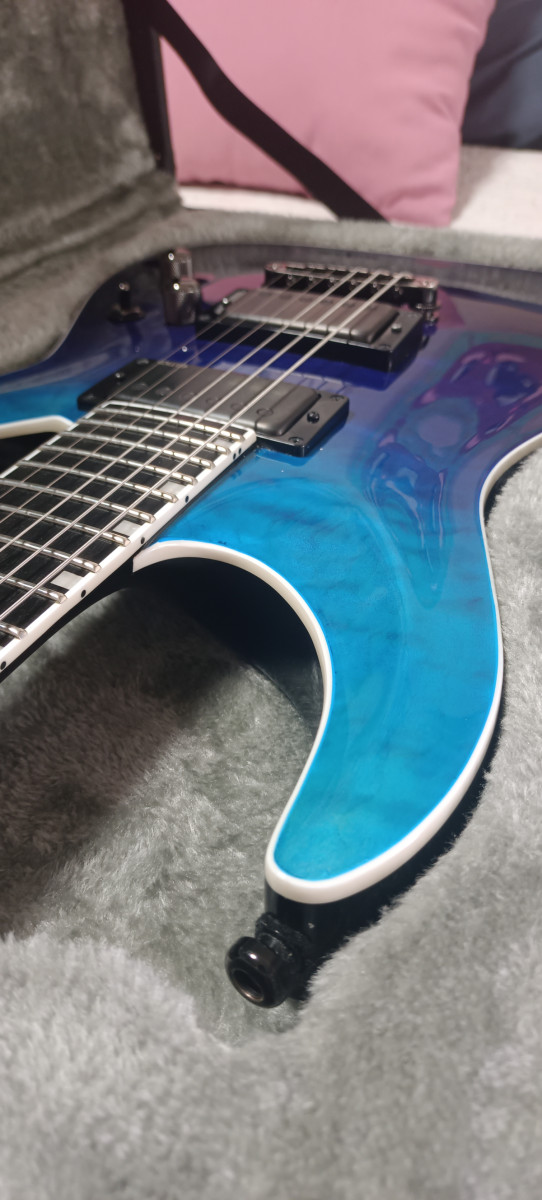 La guitarra es una maravilla de los pies a la cabeza, acabados, electrónica, comodidad. todo, es perfecta, entonces por qué la vendo? Pues porque tengo el modelo anterior (el de la pala fea jajaja) que tiene el mástil mas grueso y Floyd Rose y me temo que me he hecho a ella de forma irremediable.